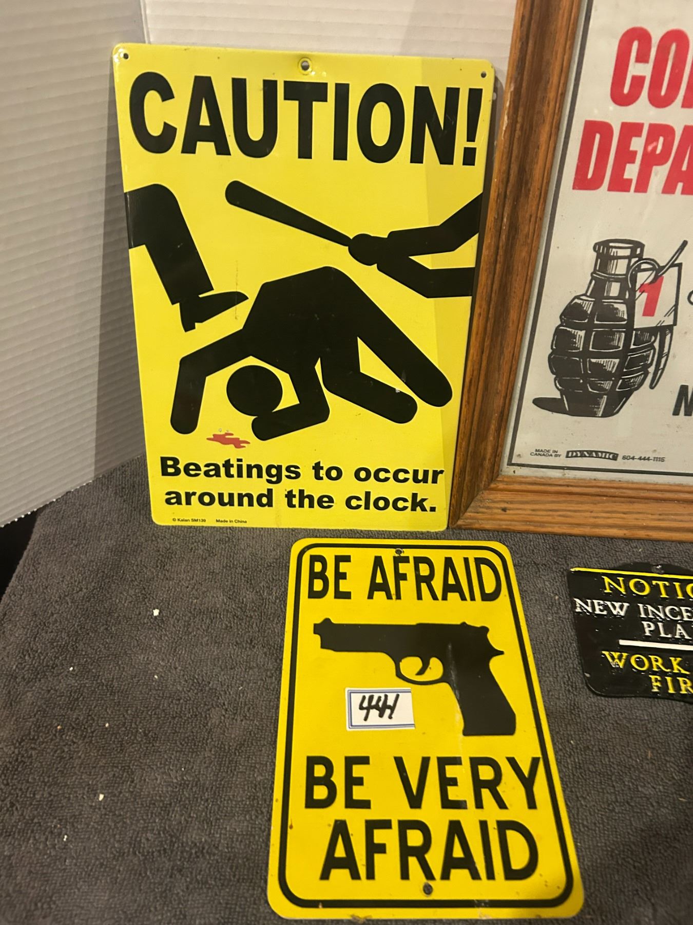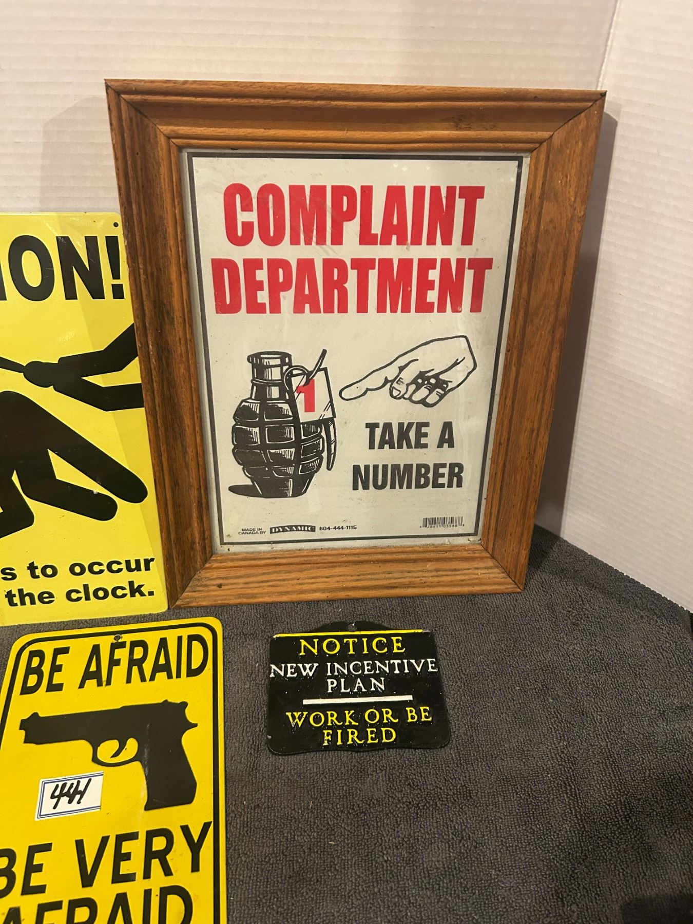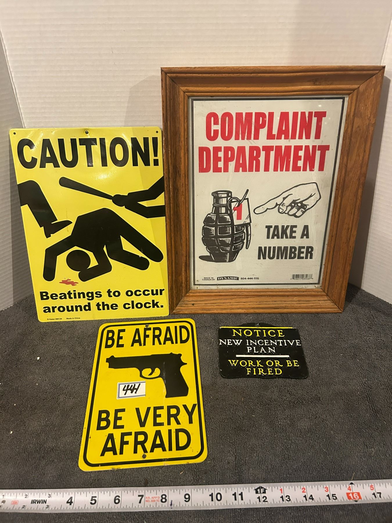 4 novelty signs- 3- metal and 1 framed