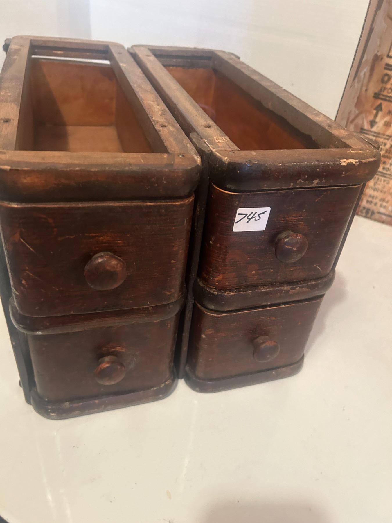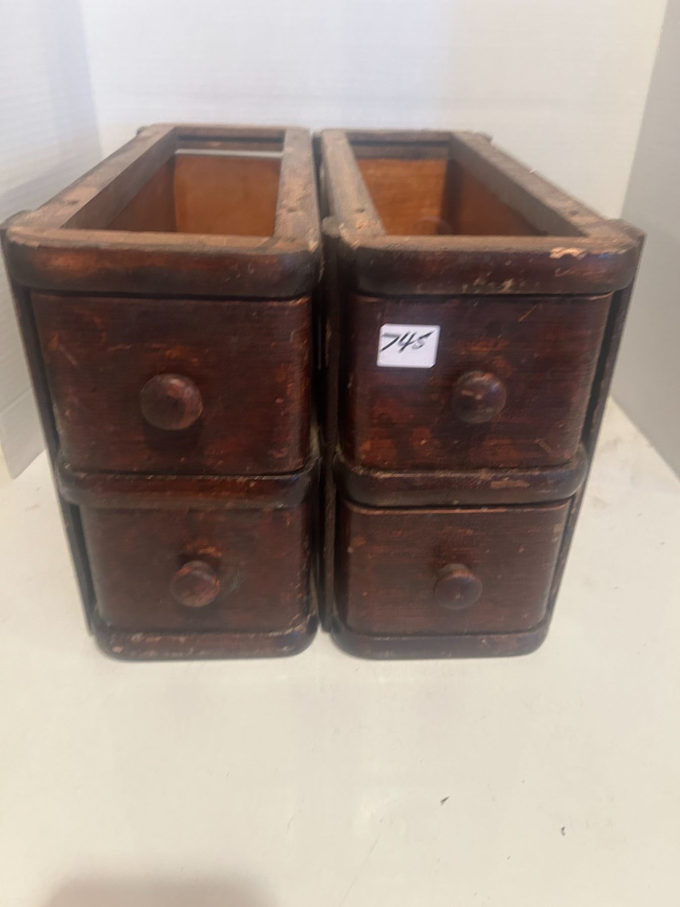 4 oak sewing drawer boxes