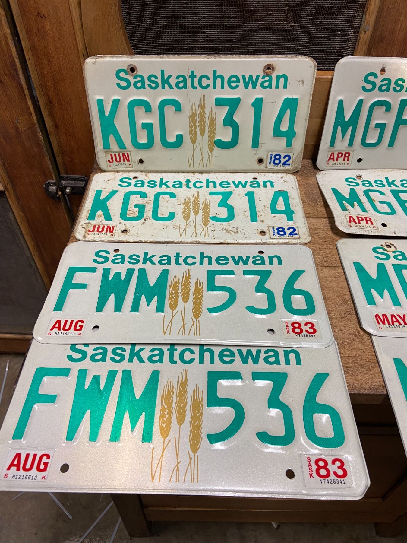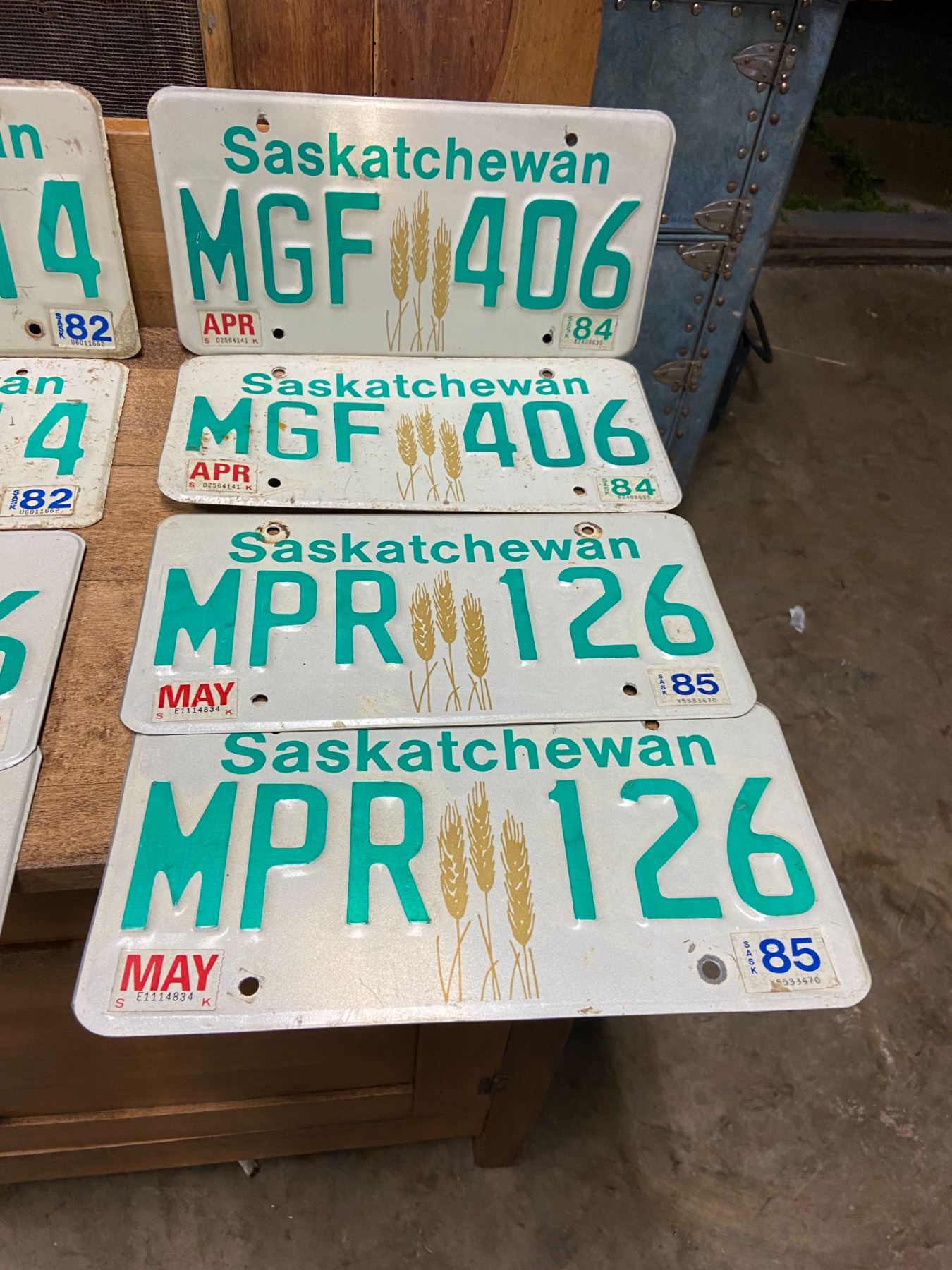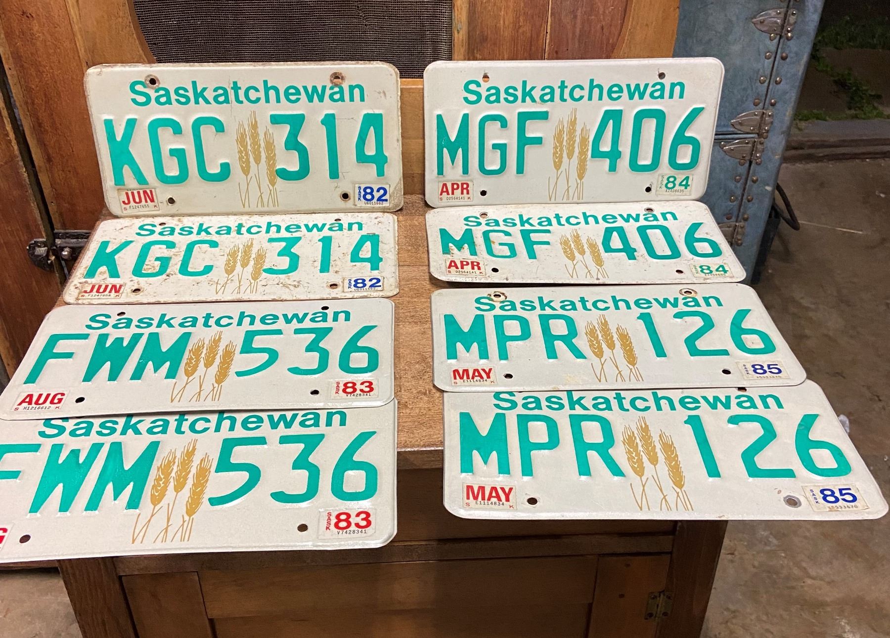 4 pair Saskatchewan license plates - 1982-1985