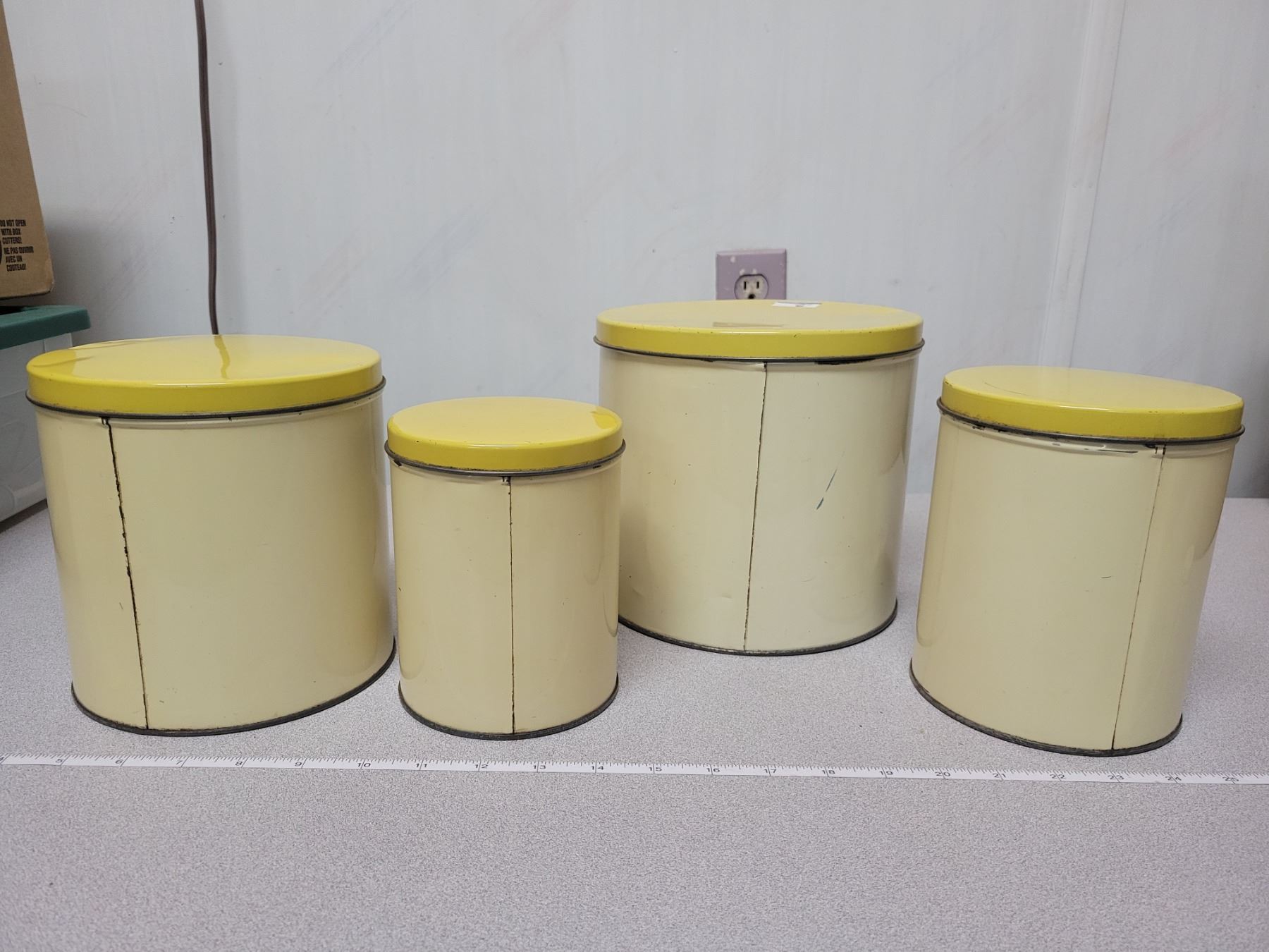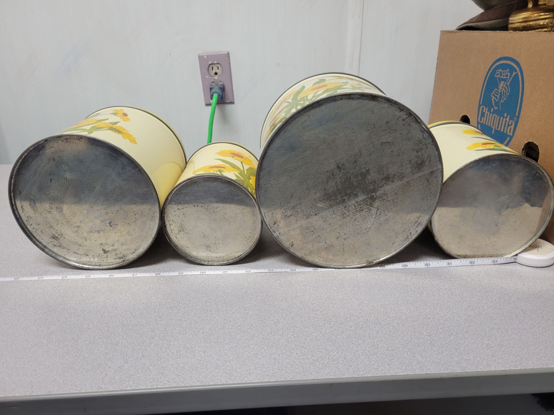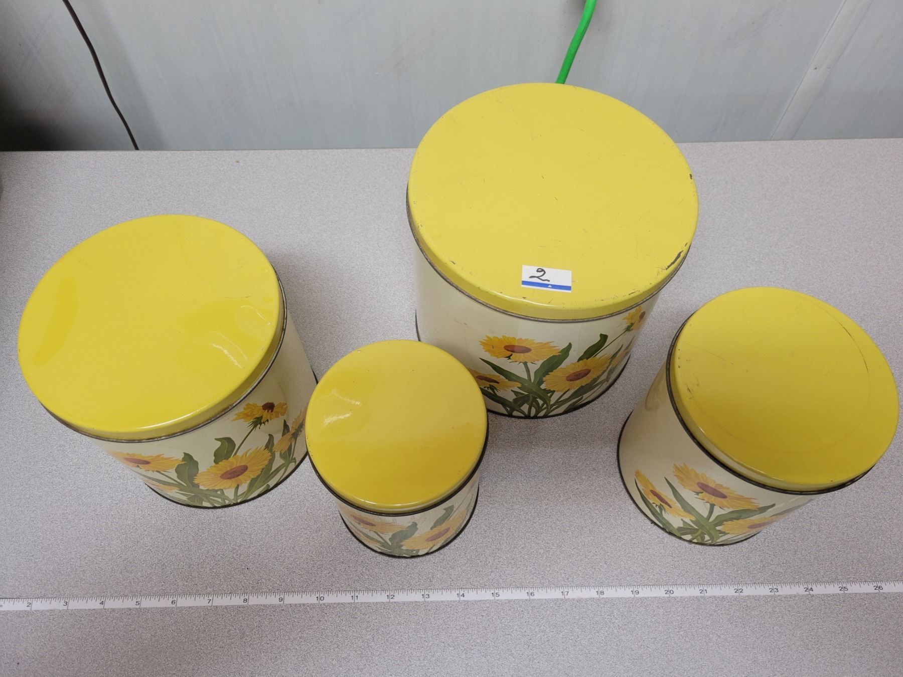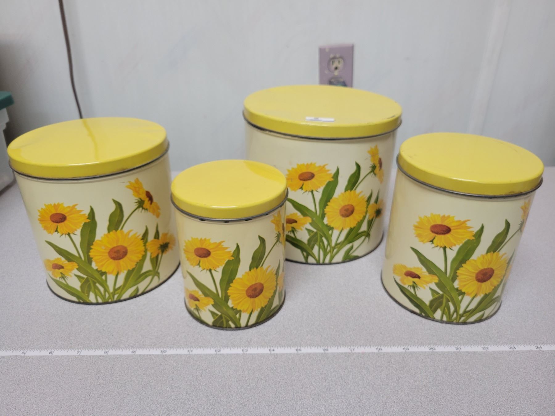 4 piece vintage canister set, sunflower motif