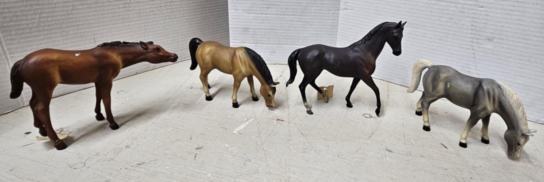4 plastic horse figures 7"x5" tall (Breyer?)