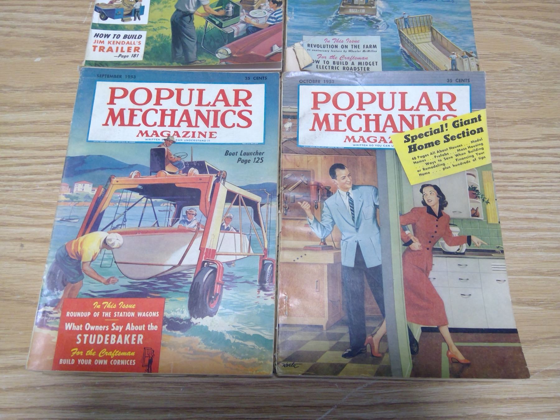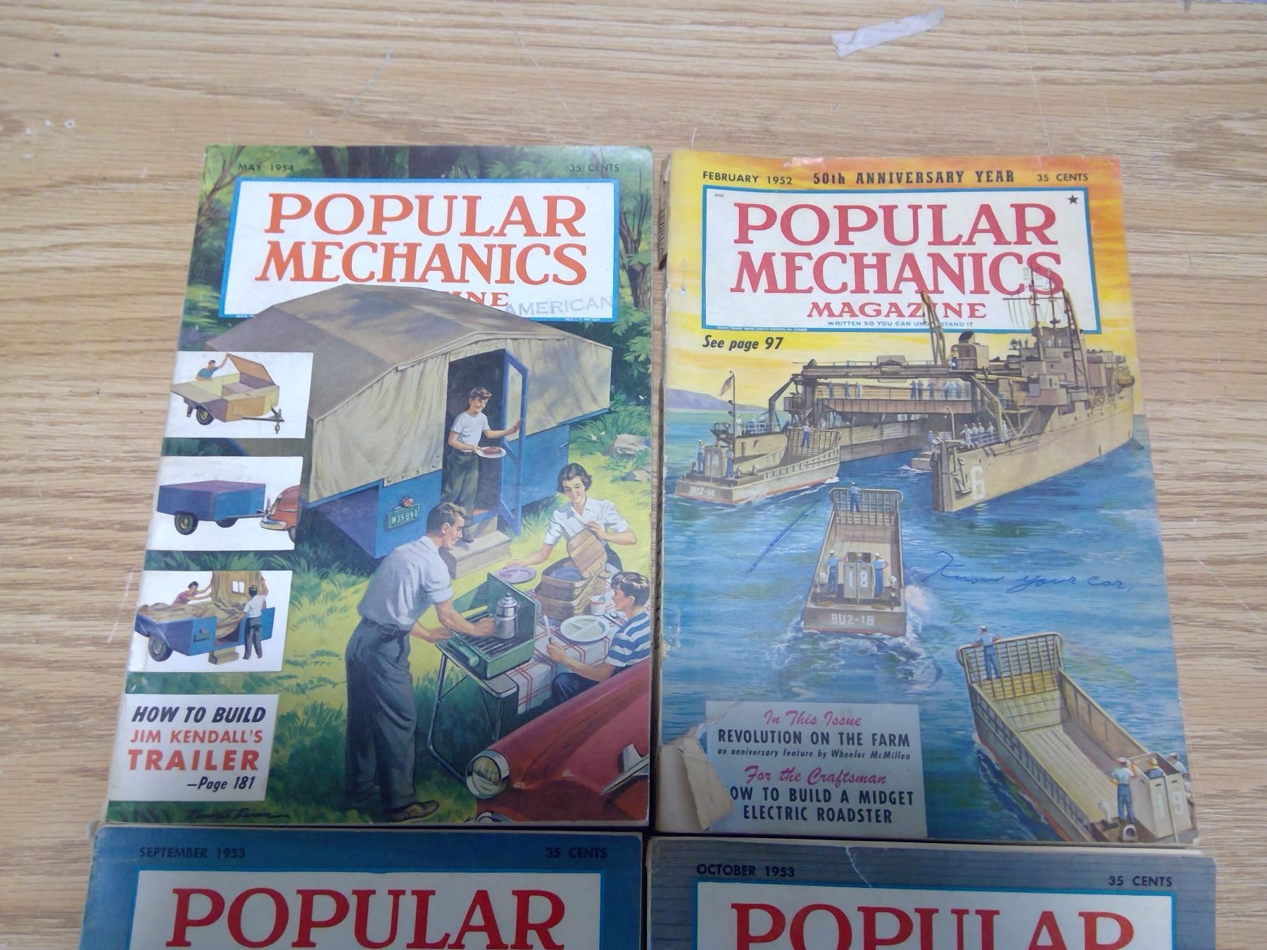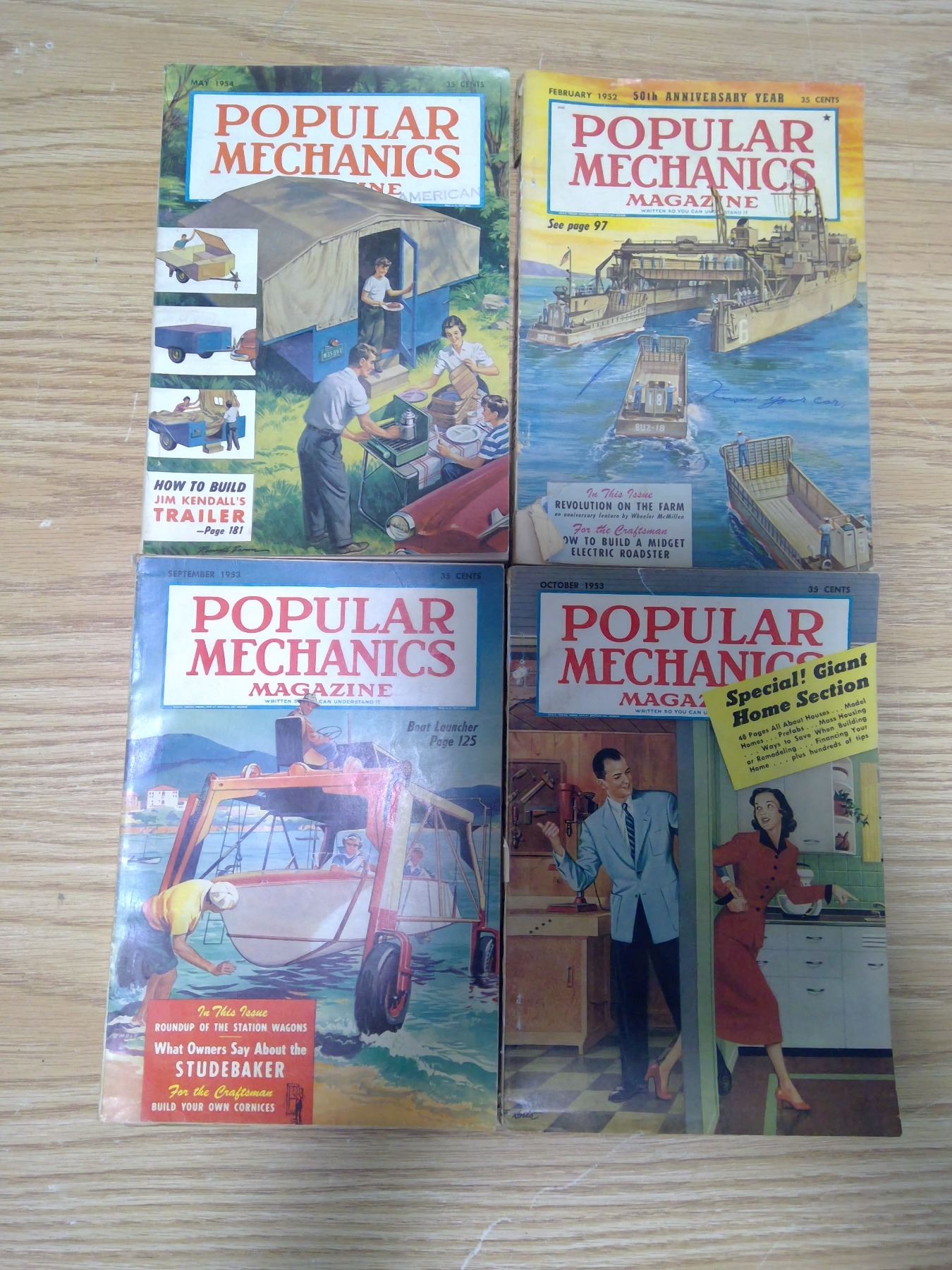4 popular mechanics magazines 1952, 53, 54