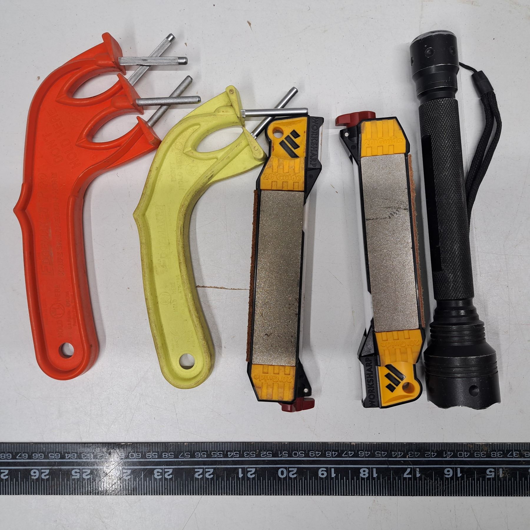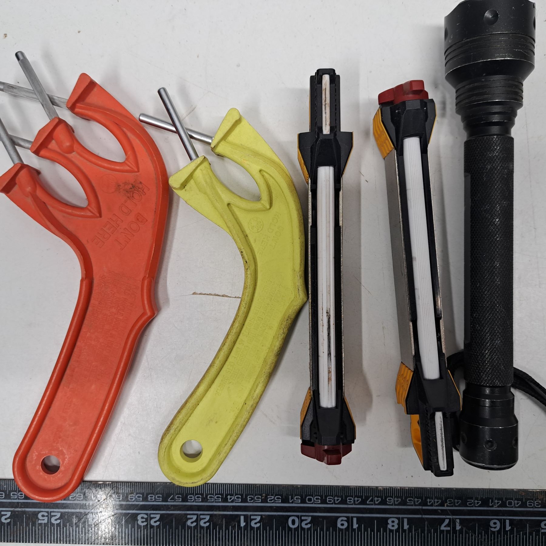 4 sharpeners and millitary flashlight