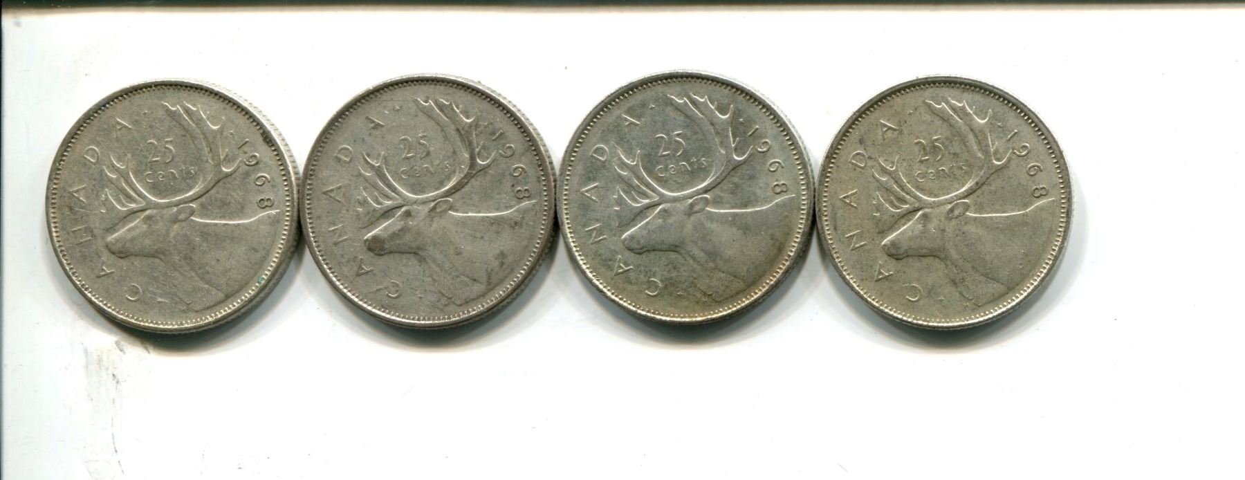 4 silver Canadian 1968 quarters