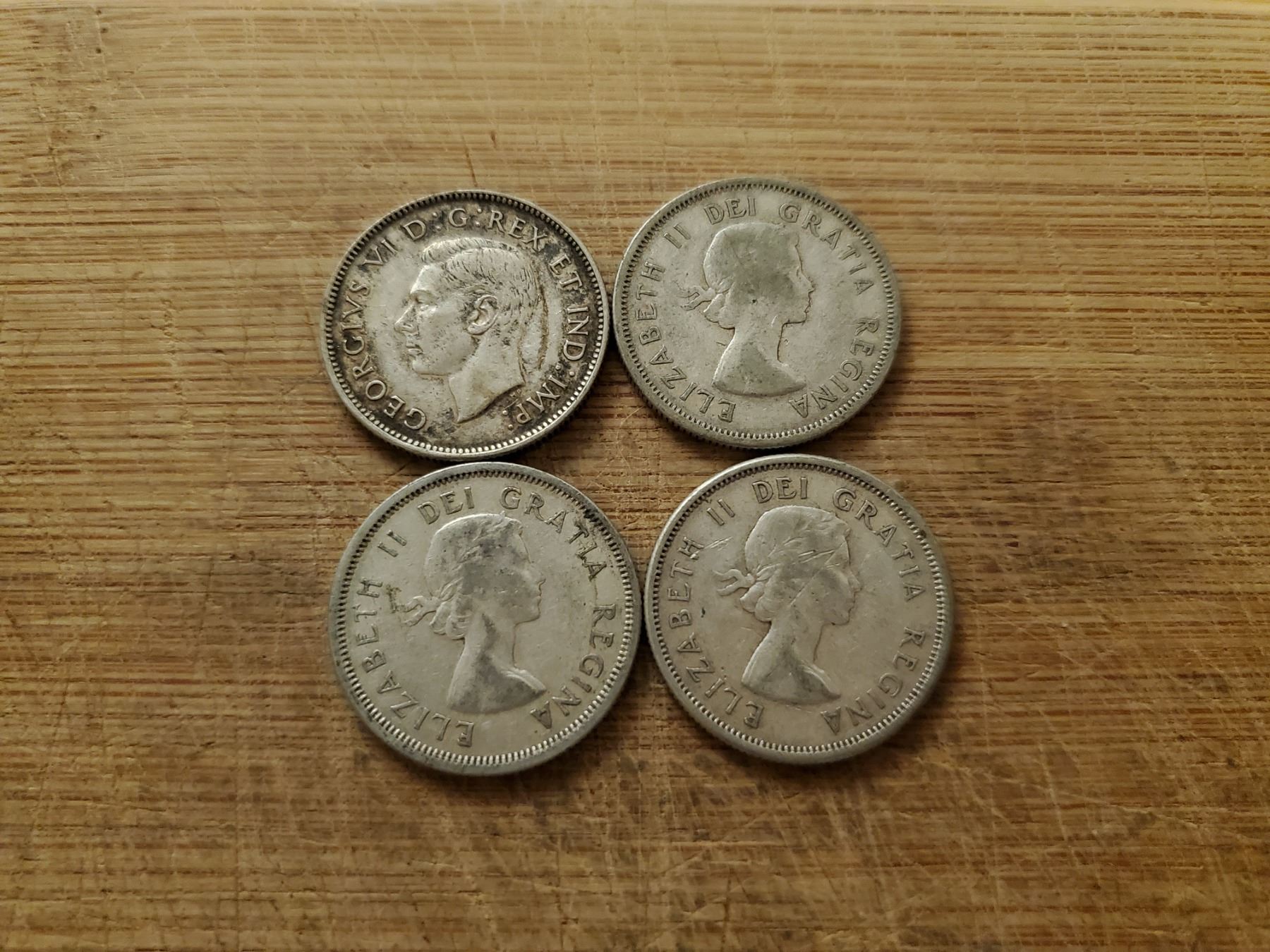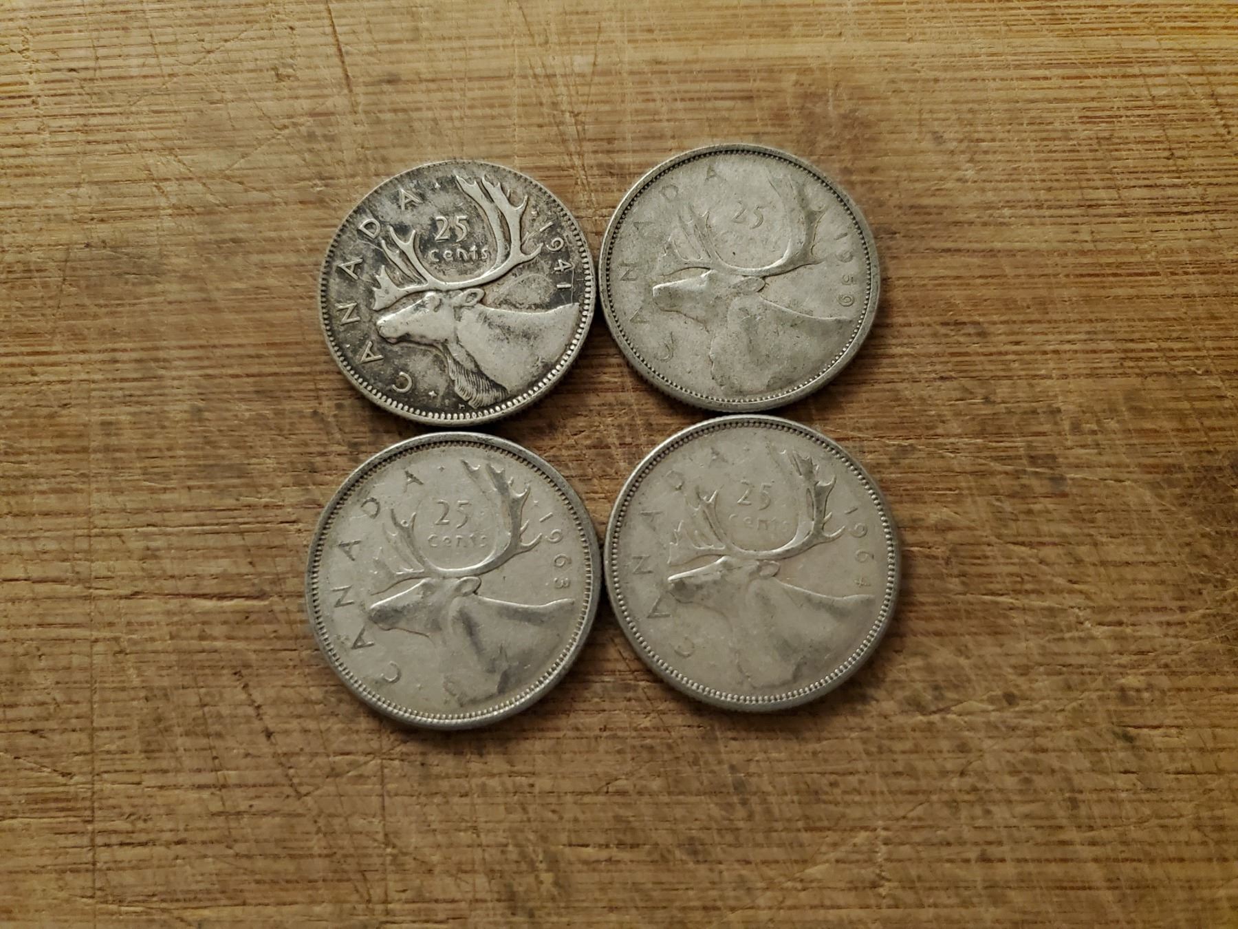 4 silver Canadian quarters 1941, 1950, 1963, 1964