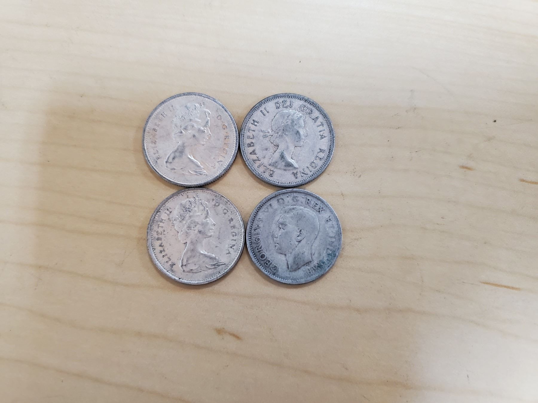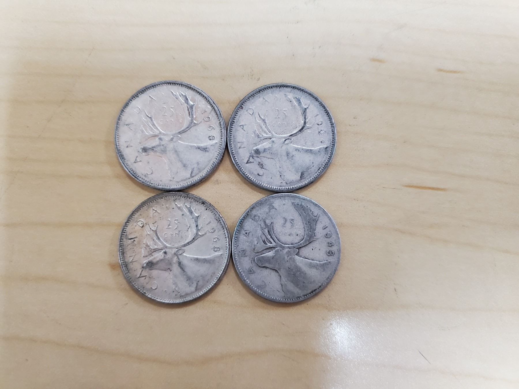 4 silver Canadian quarters 1943, 1964, 1968 x 2 non magnetic