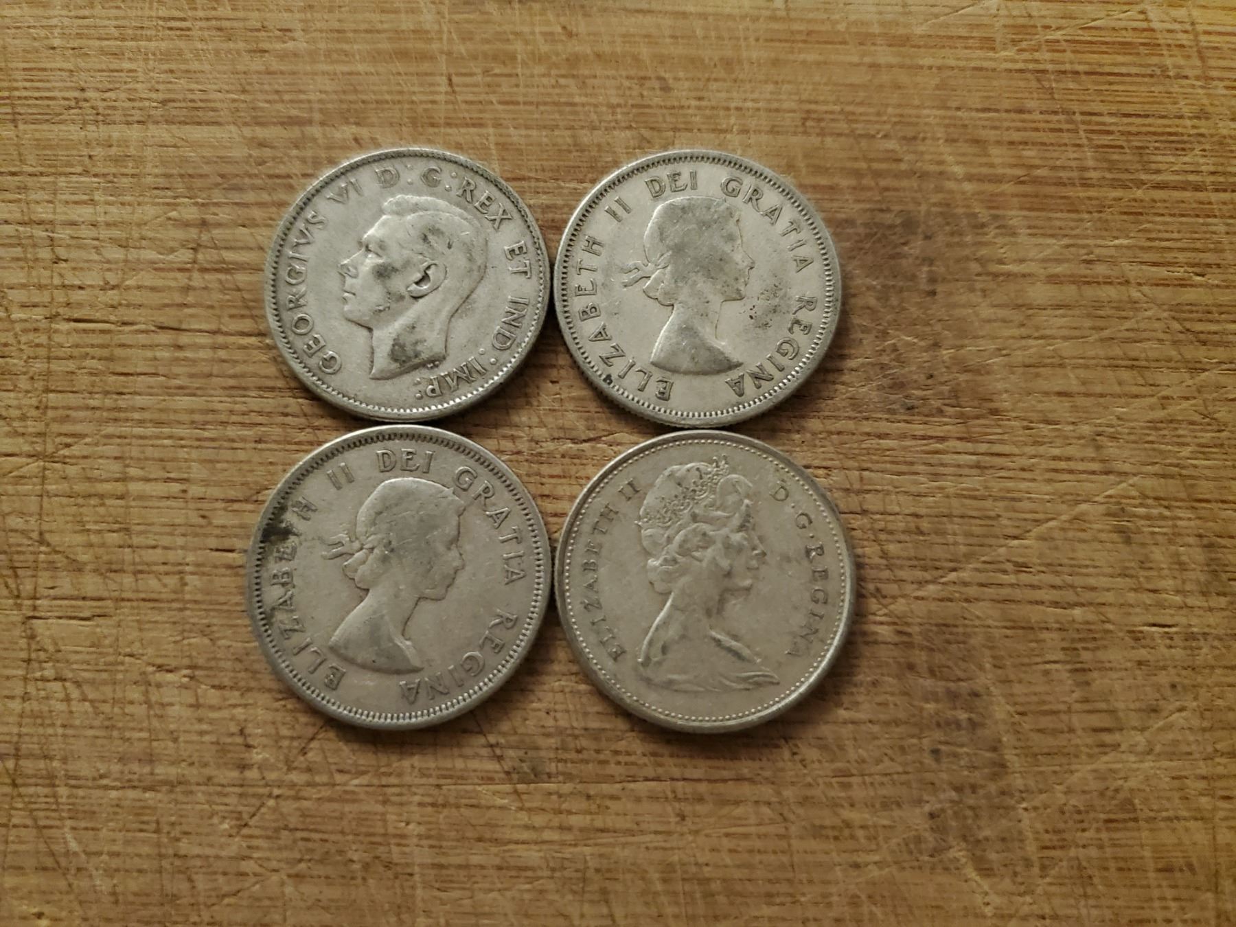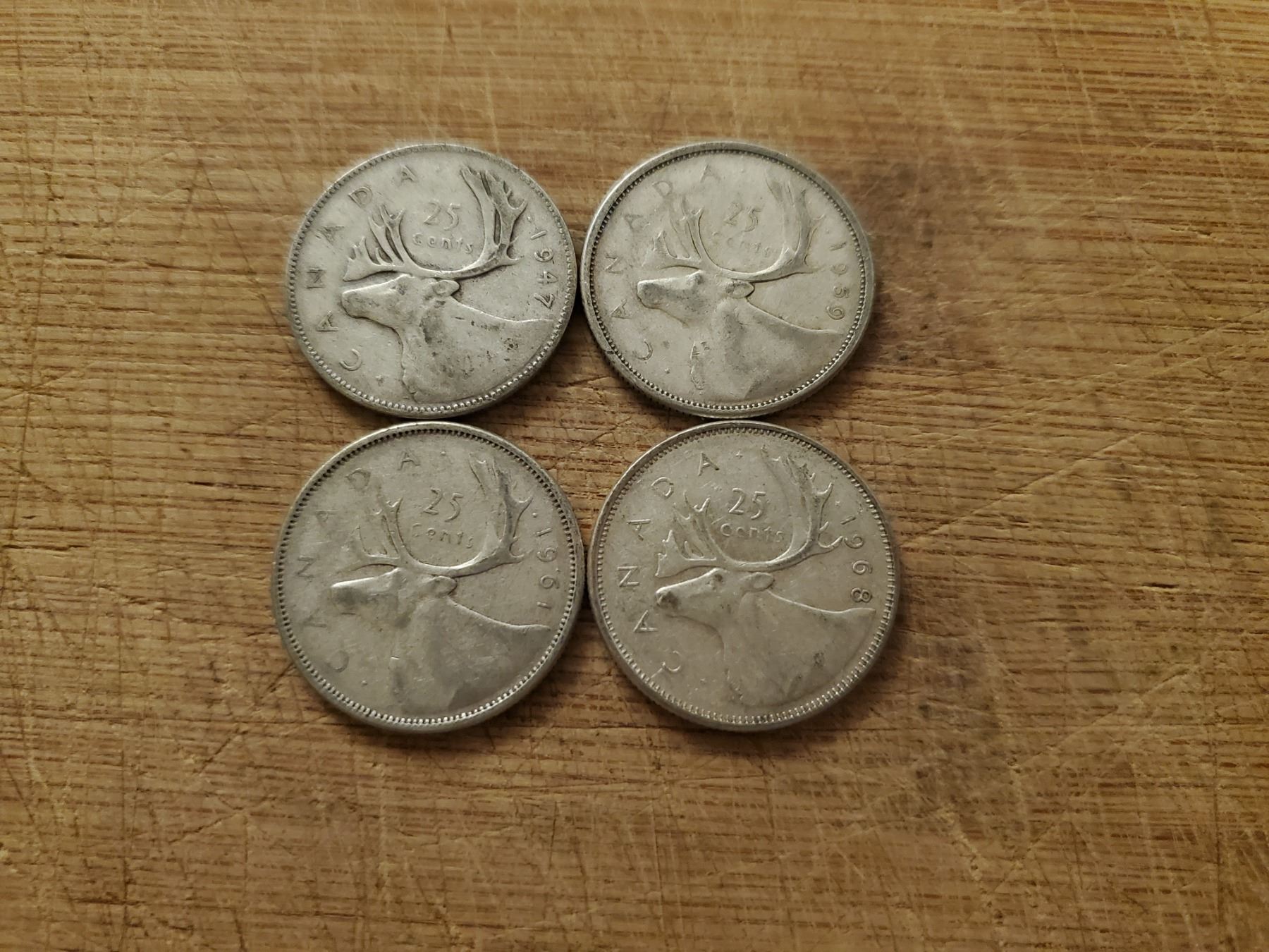 4 silver Canadian quarters 1947, 1959, 1961, 1968 non magnetic