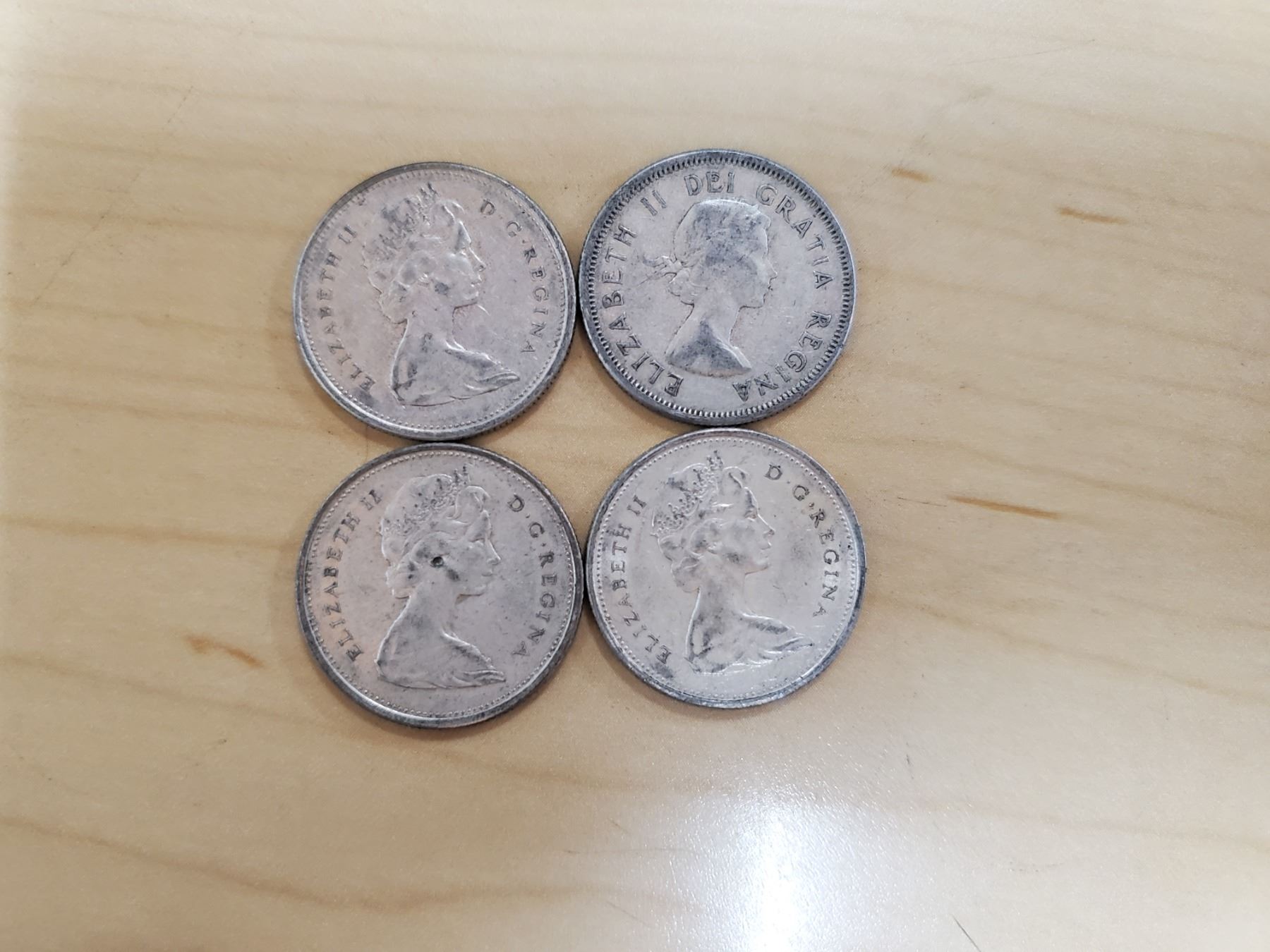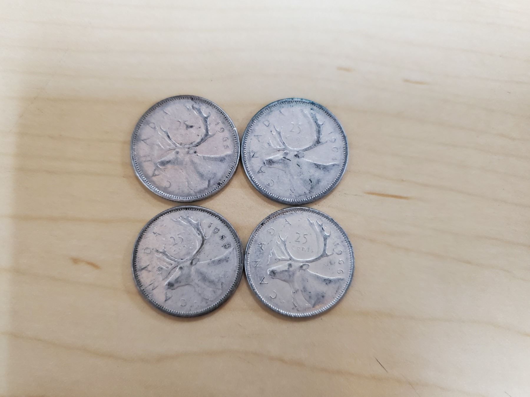 4 silver Canadian quarters 1964, 1965, 1966, 1968 non magnetic