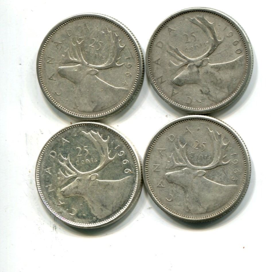4 silver Canadian quarters