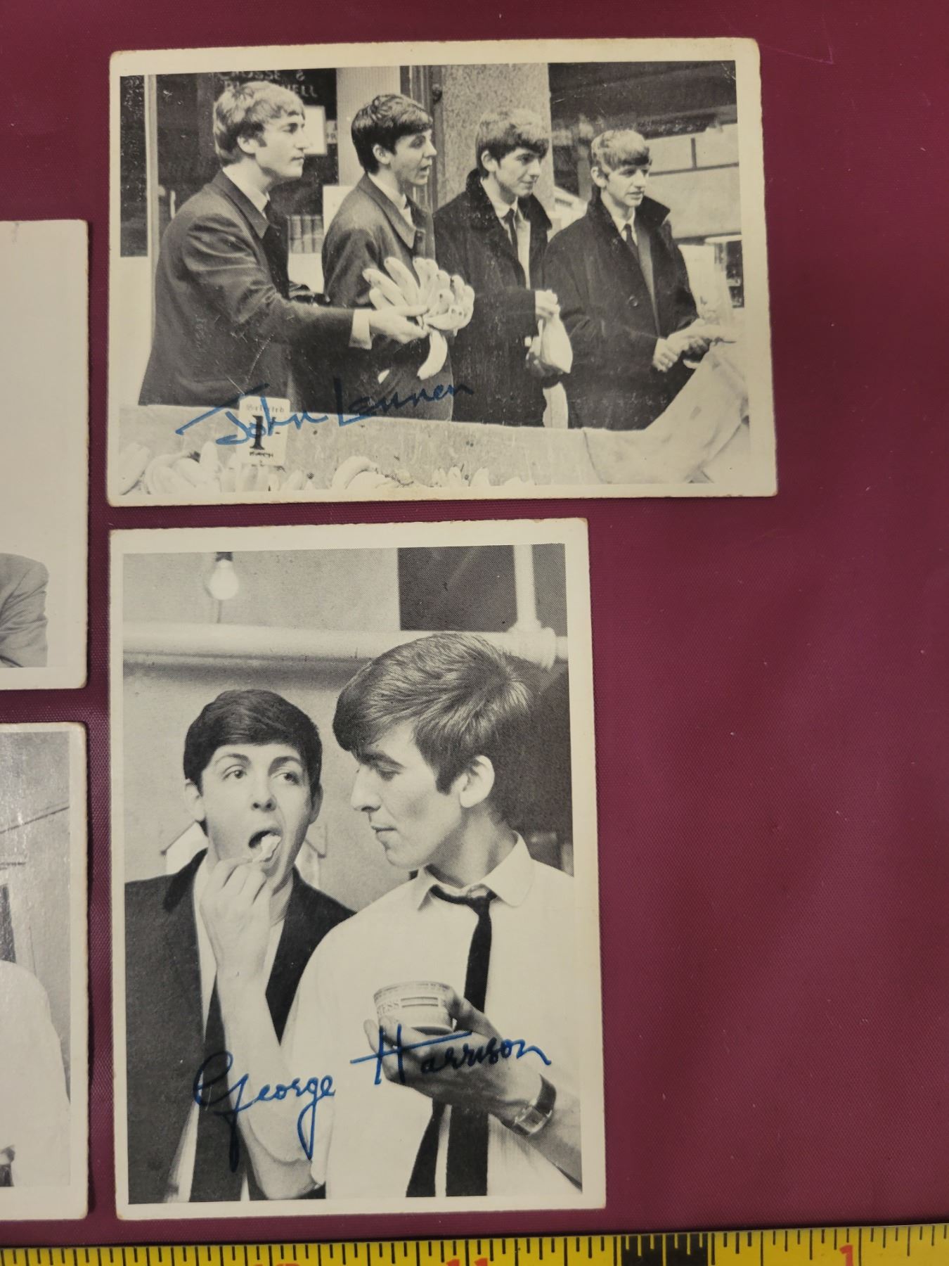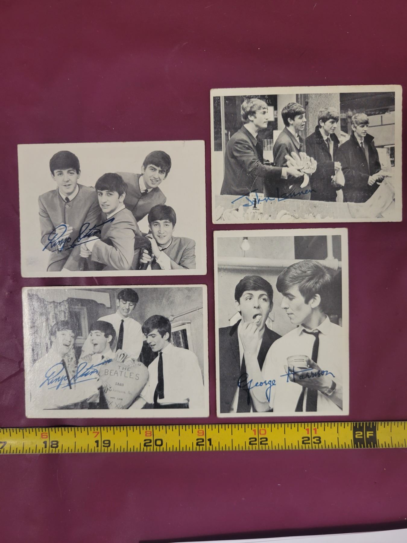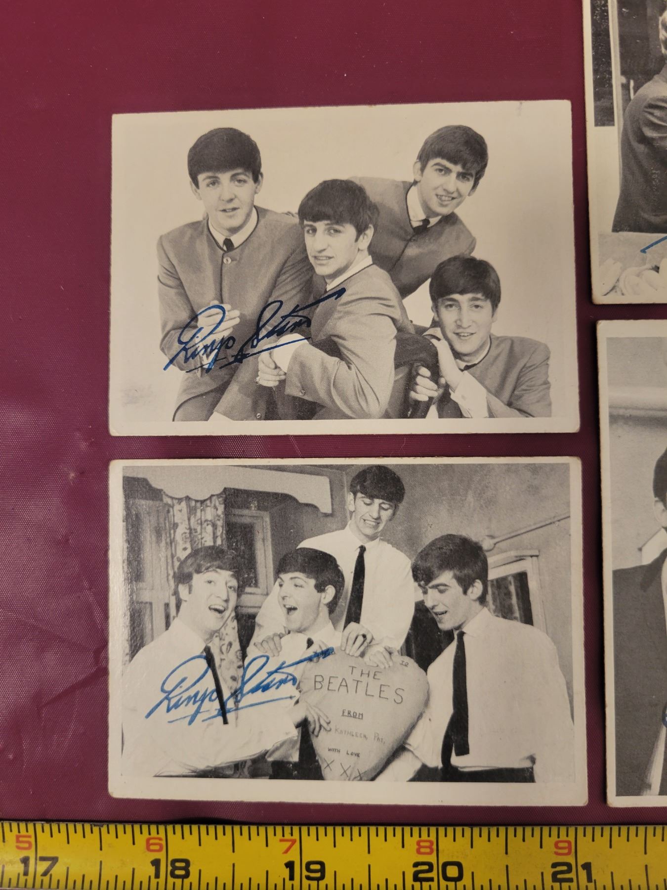 4 small signed Beatles cards from the 1960’s (John Lennon, 2 Ringo Starr, George Harrison)