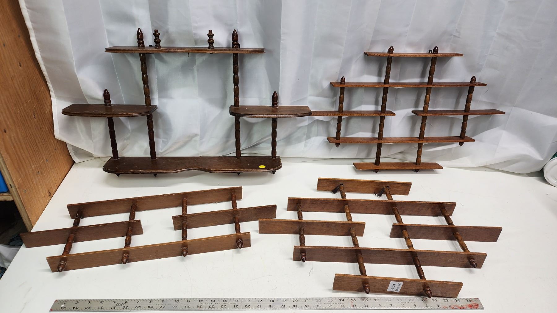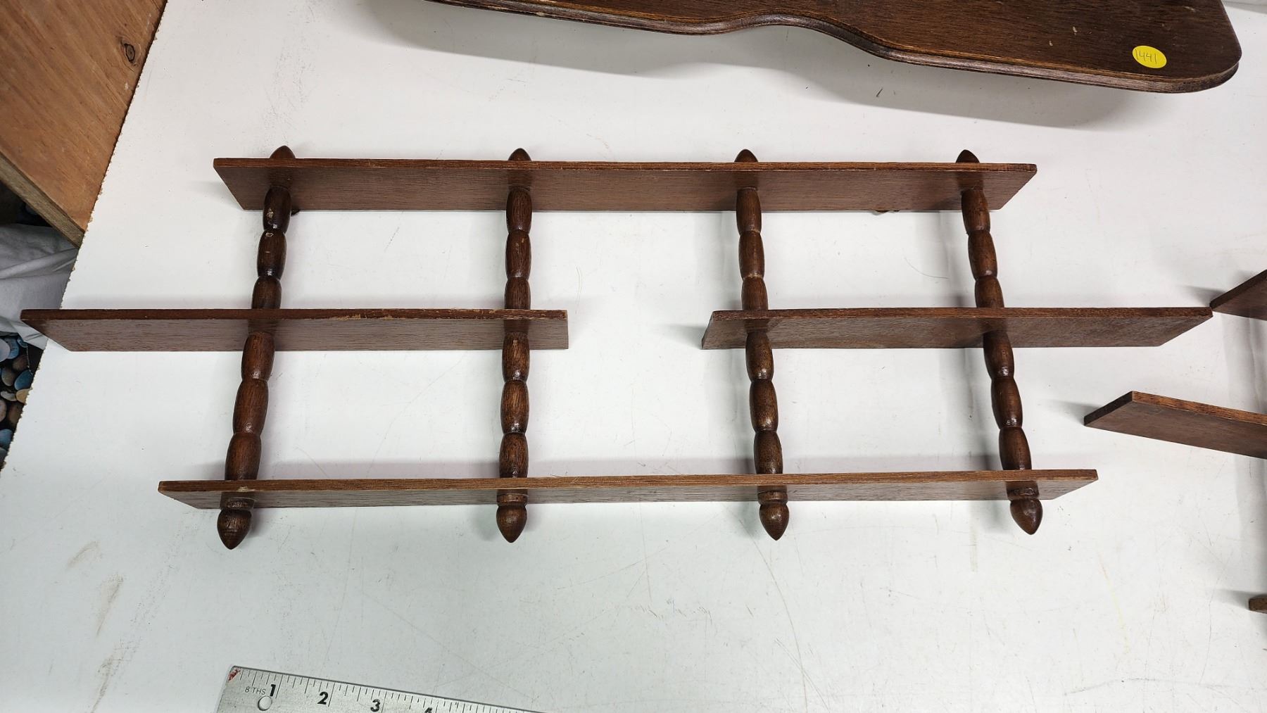 4 small wooden decorative wall hanging shelves - 24" w & 27"w