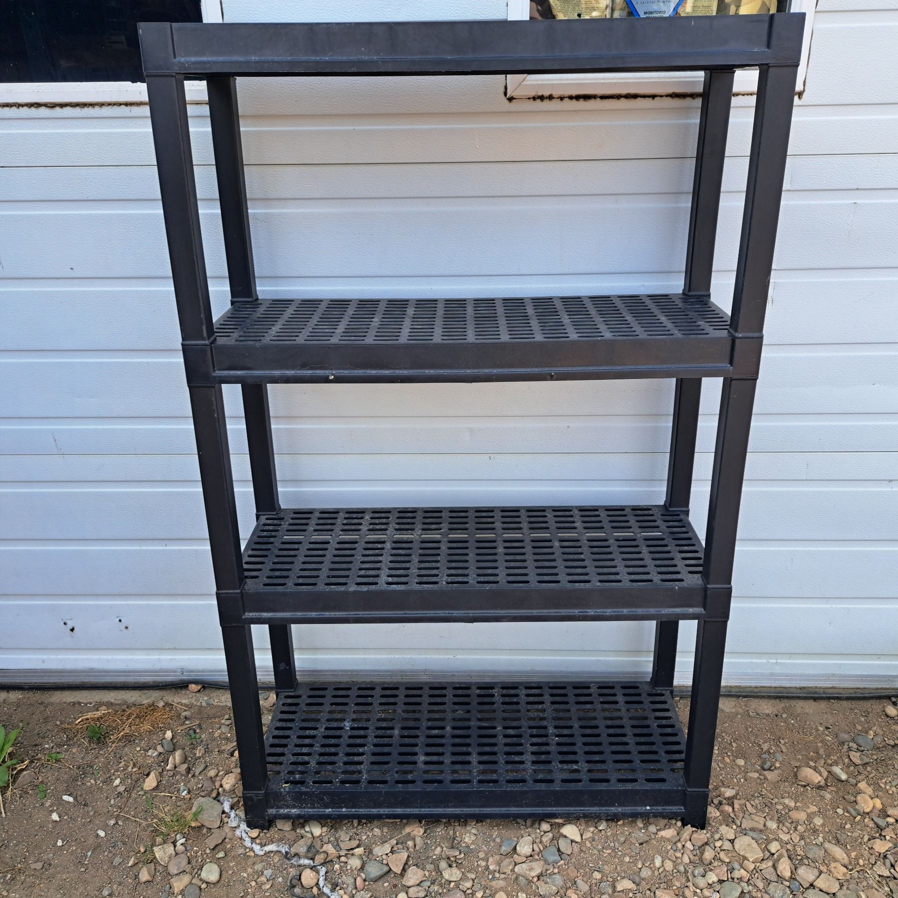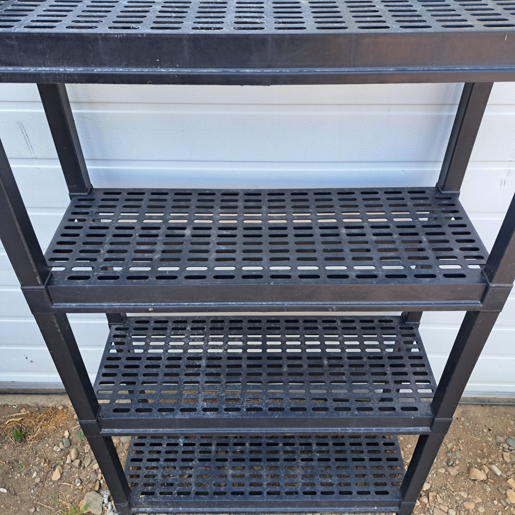 4 tier plastic shelf- 57"H by 37"L by 13"W