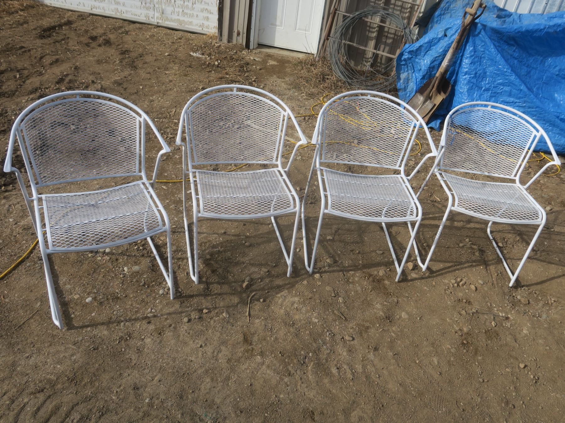 4 white lawn chairs