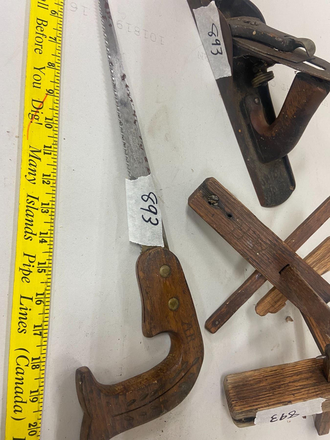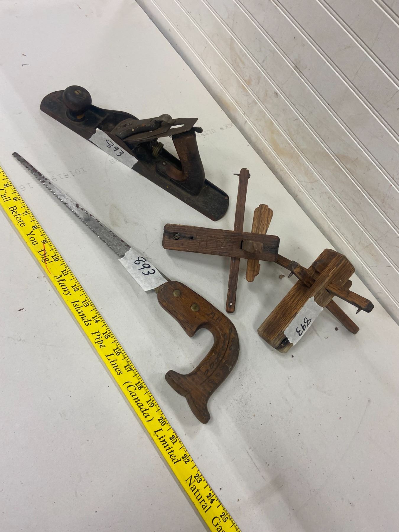 4 wood working pc's- union #6 plane, 2 scribes oak, and small saw