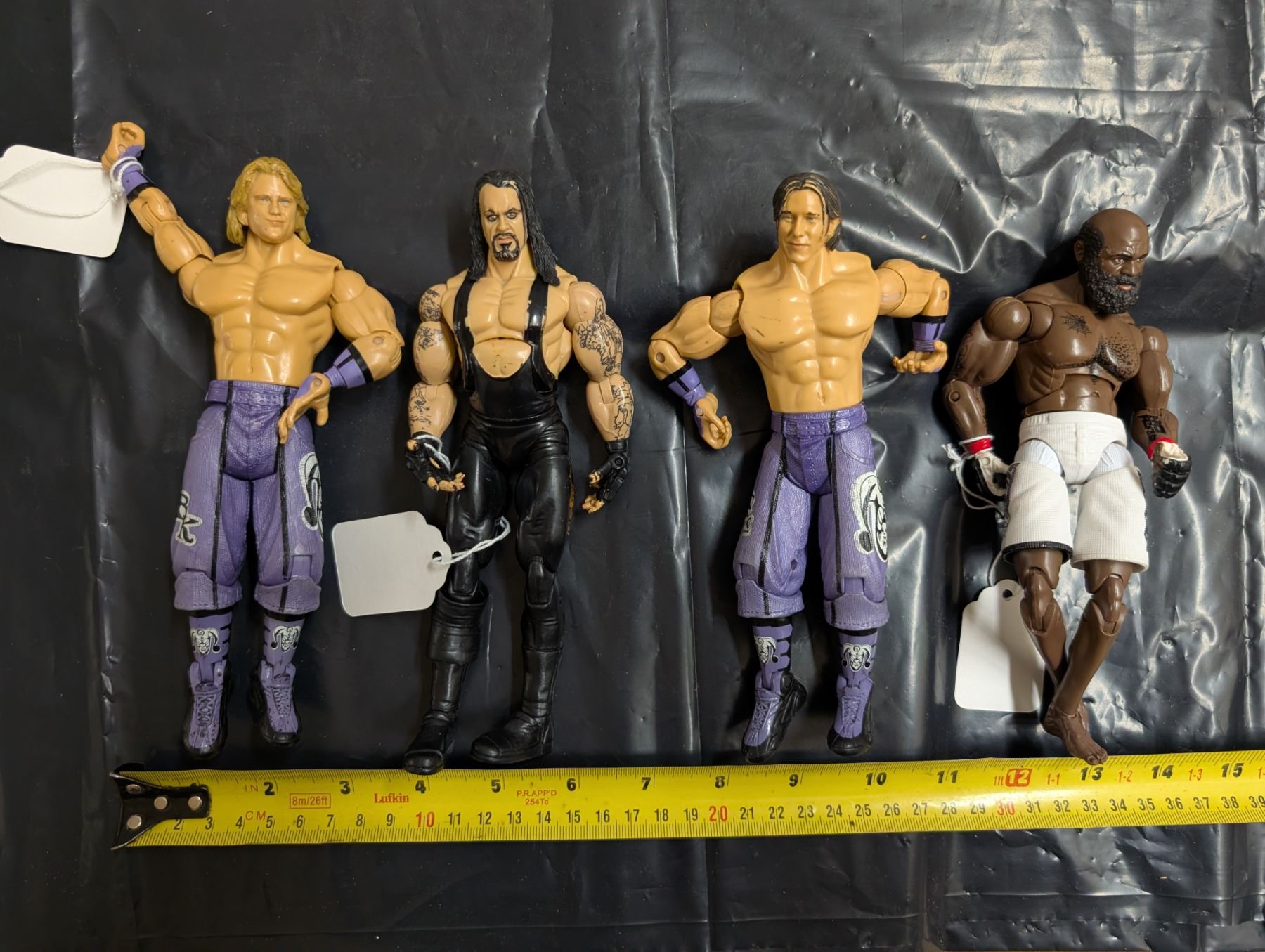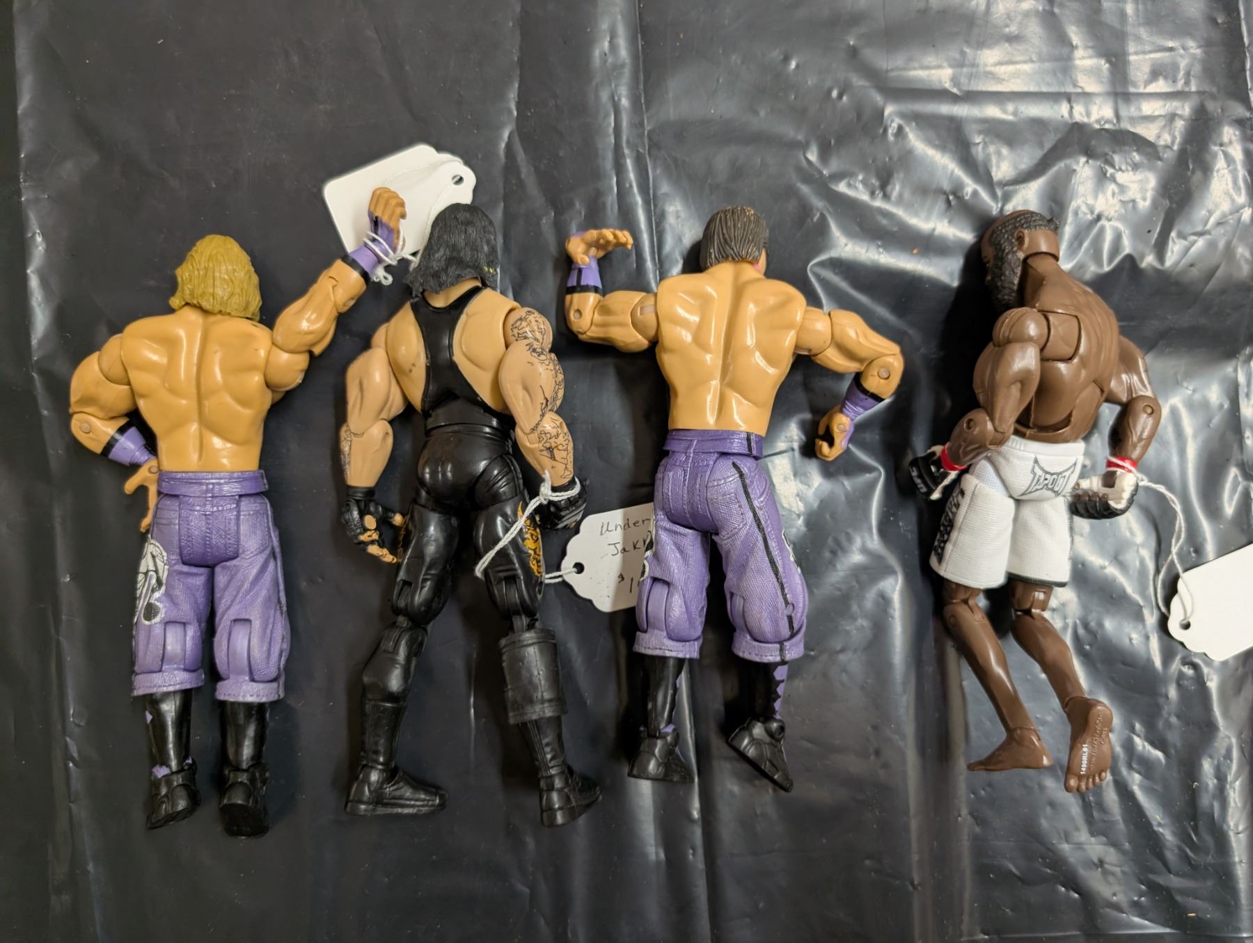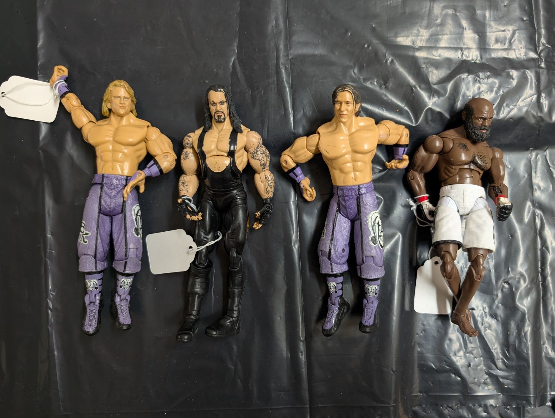 4 wrestling figures, the undertaker and brain Hendrick