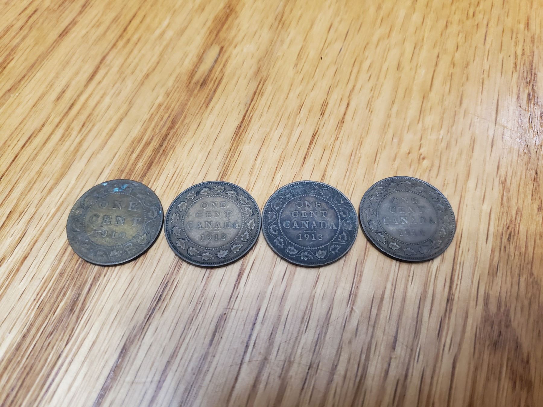 4 x Canada Large Cent 1910, 1912, 1913, 1914
