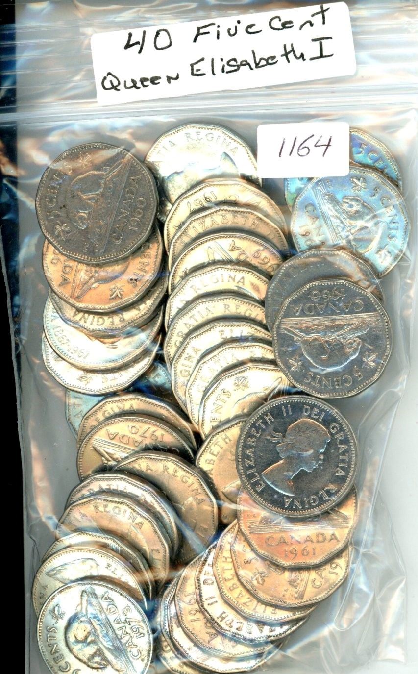 1953 - 1964 40 Queen Elizabeth 1st Five Cent Coins