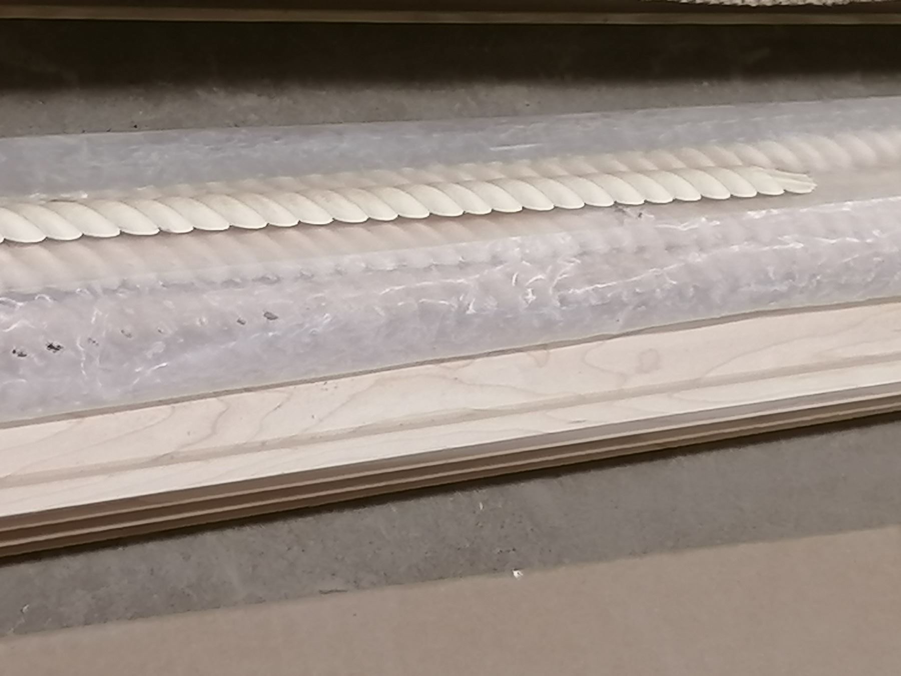 40 ft of large ornate maple crown with loose rope moulding to insert in groove