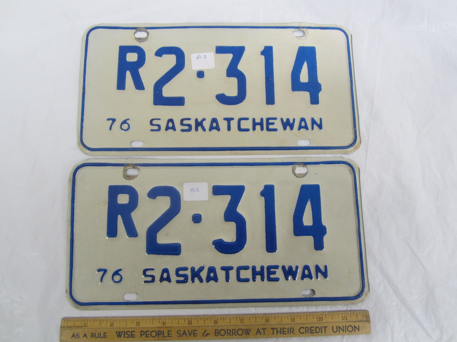412. Pair of 1976 Saskatchewan License Plates R-2-314