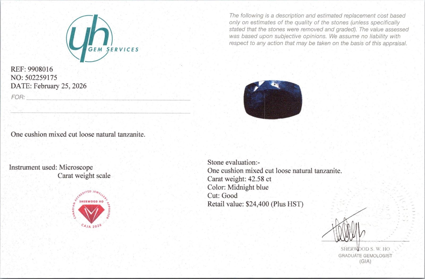 42.58 ct Certified Tanzanite gemstone ($24,400 Appraisal)