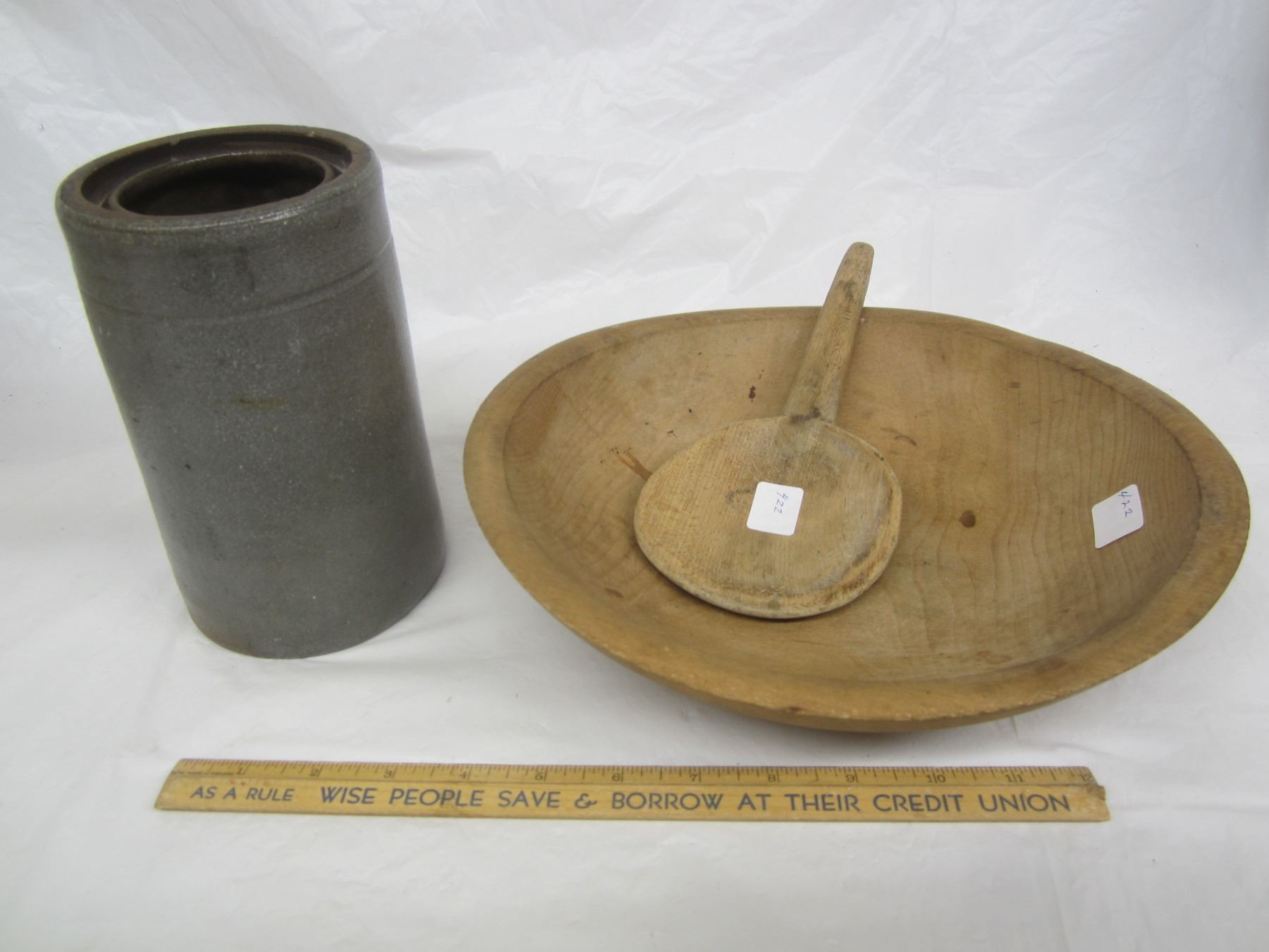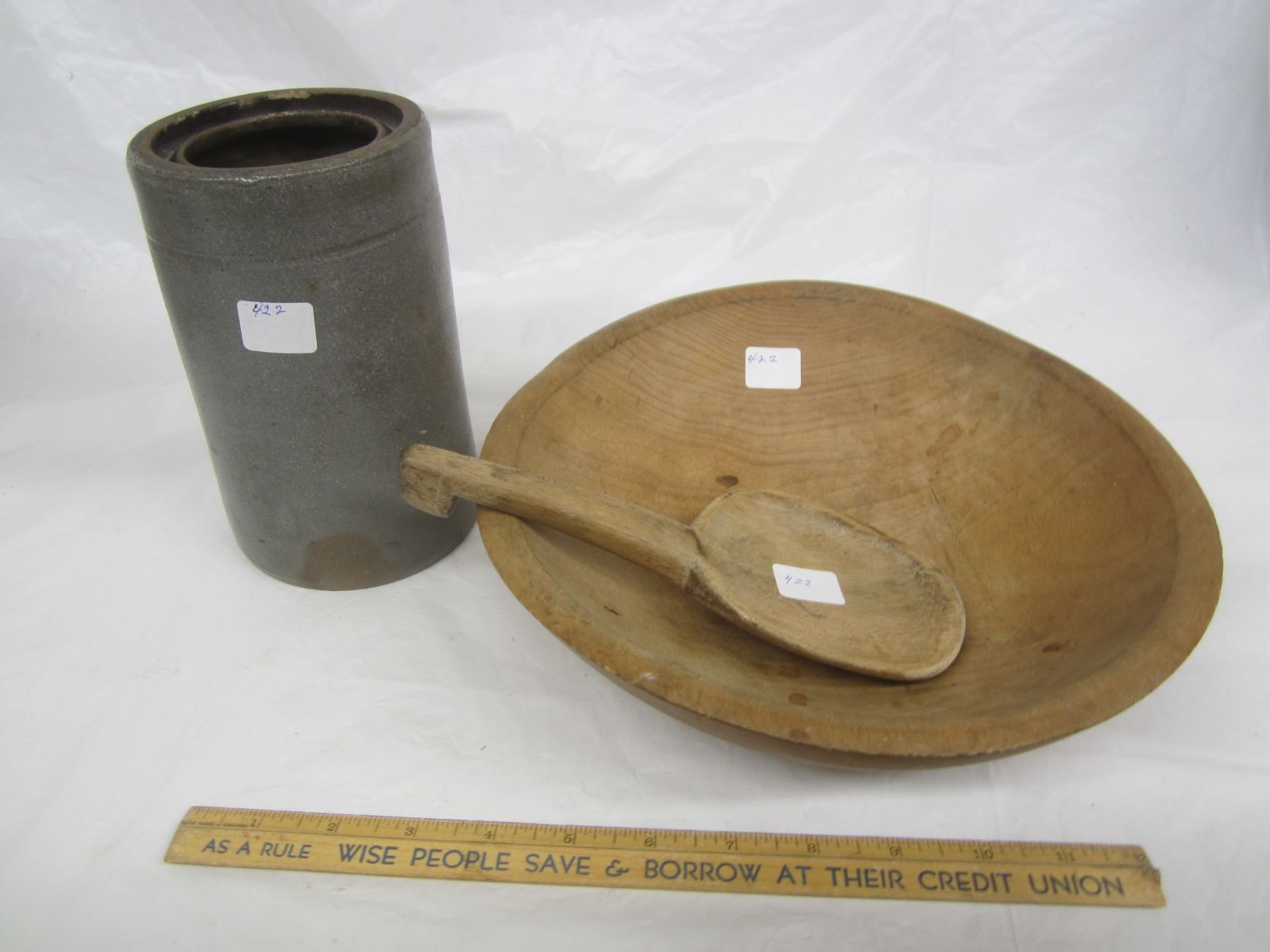 422.Antique Butter Bowl ,Spoon and Crock