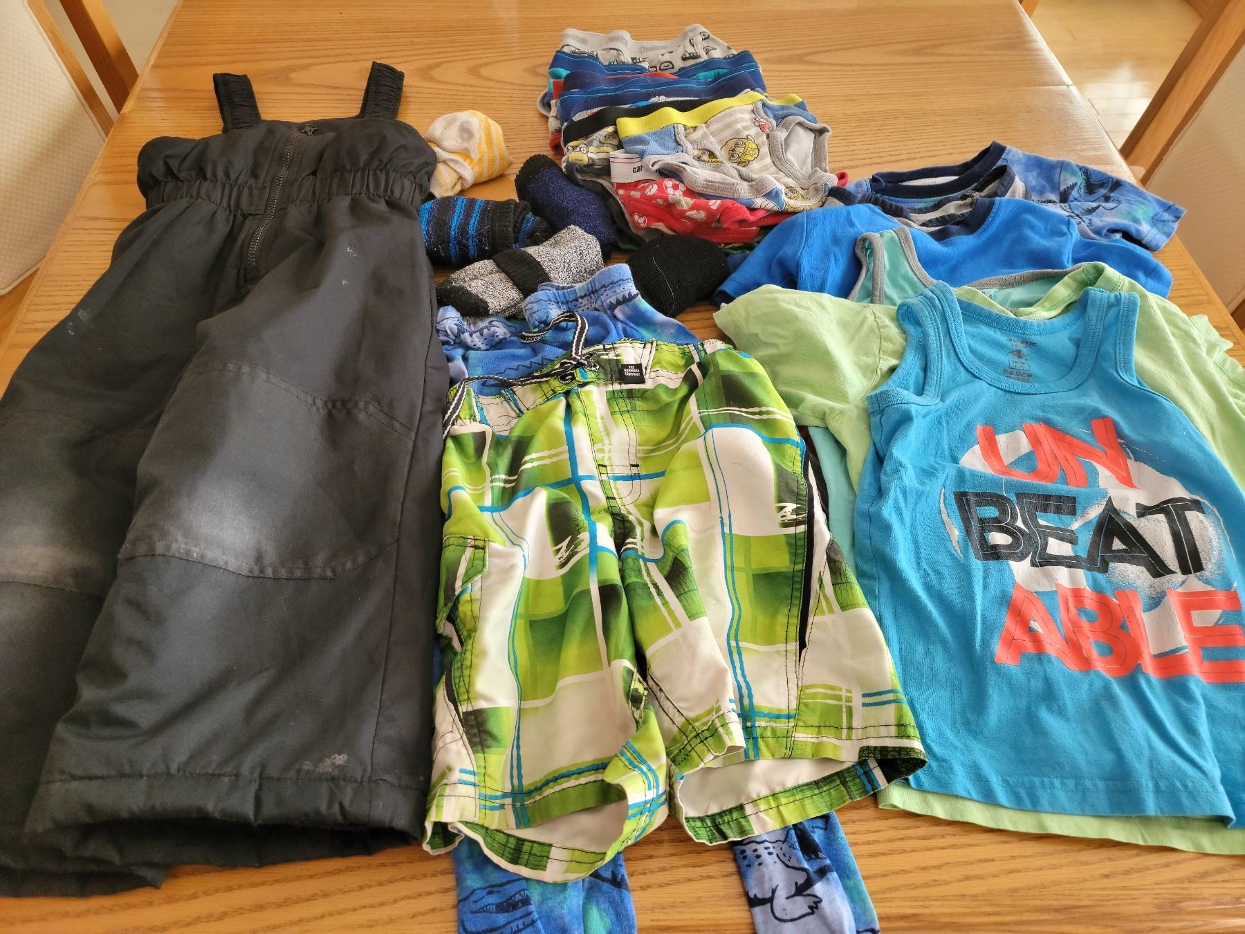 Size 4-5 Misc Boys clothes - 6 shirts, 13 underwear, 1 pant, 1 swim trunk, 5 socks, 1 ski pant