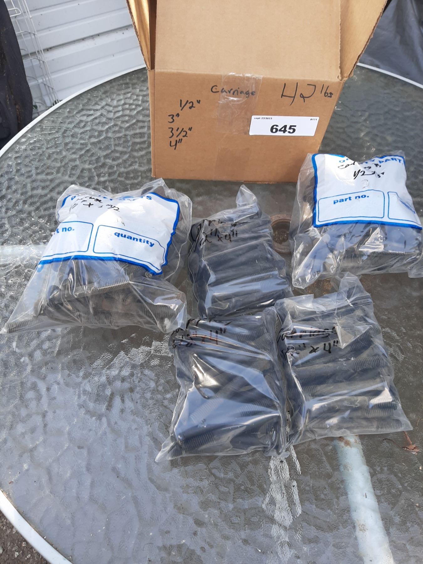 42lb box of carriage bolts 1/2" x3" 3 1/2" 4"