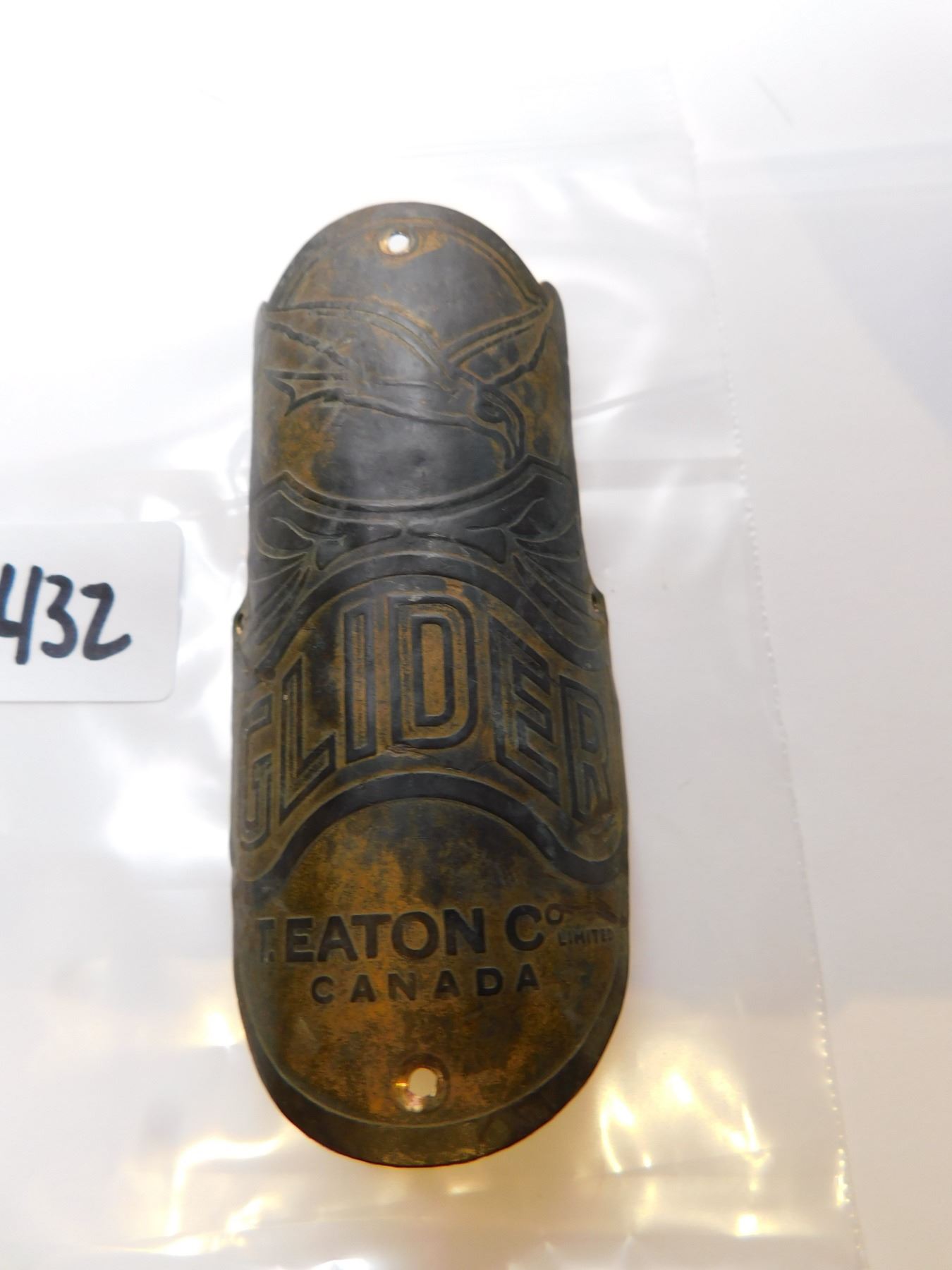 432. EATON’S CO LTD. GLIDER BIKE HEAD BADGE, SCARCE