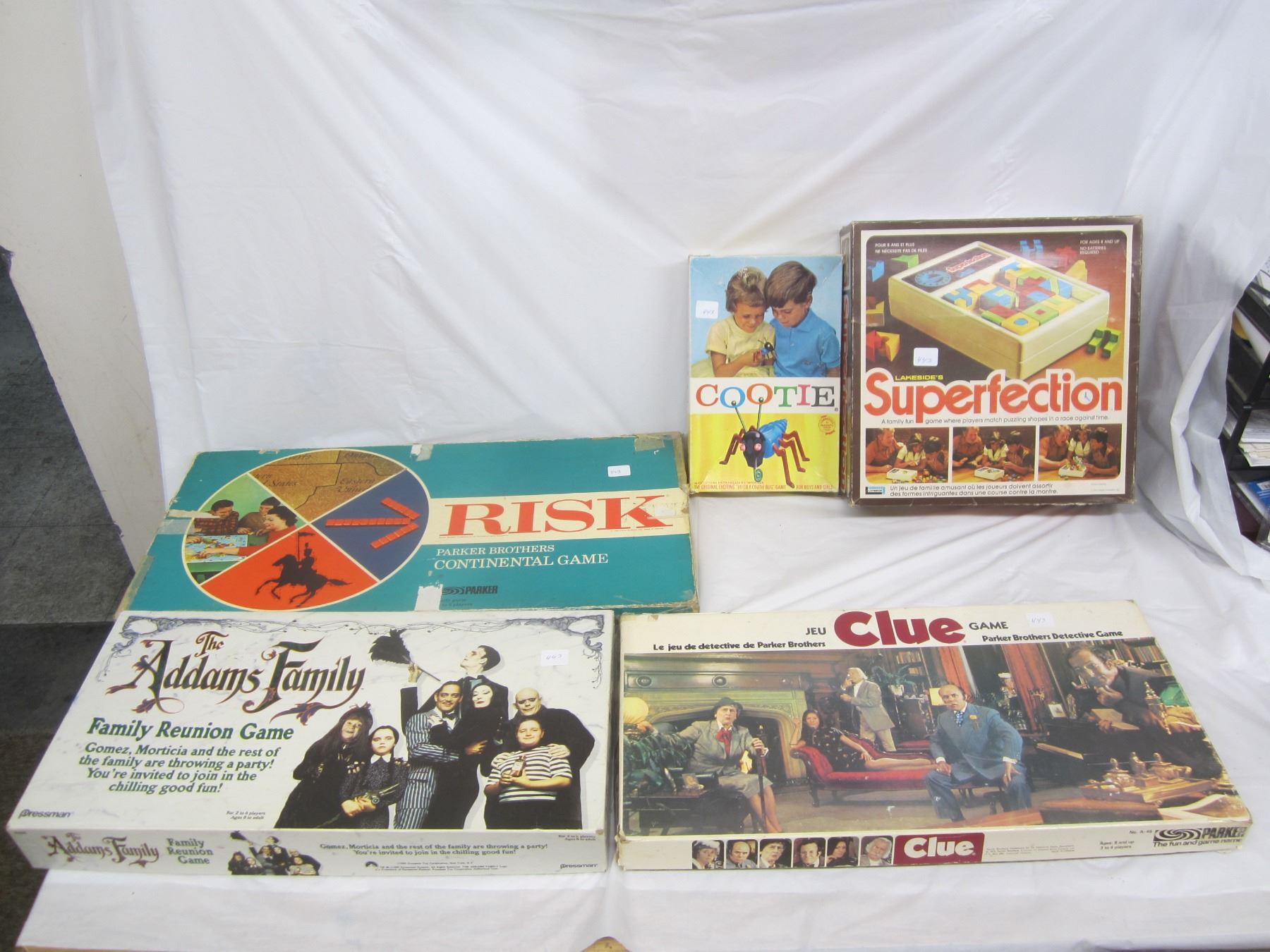 443. 5 Board Games Adam's Family ,Clue ,Risk