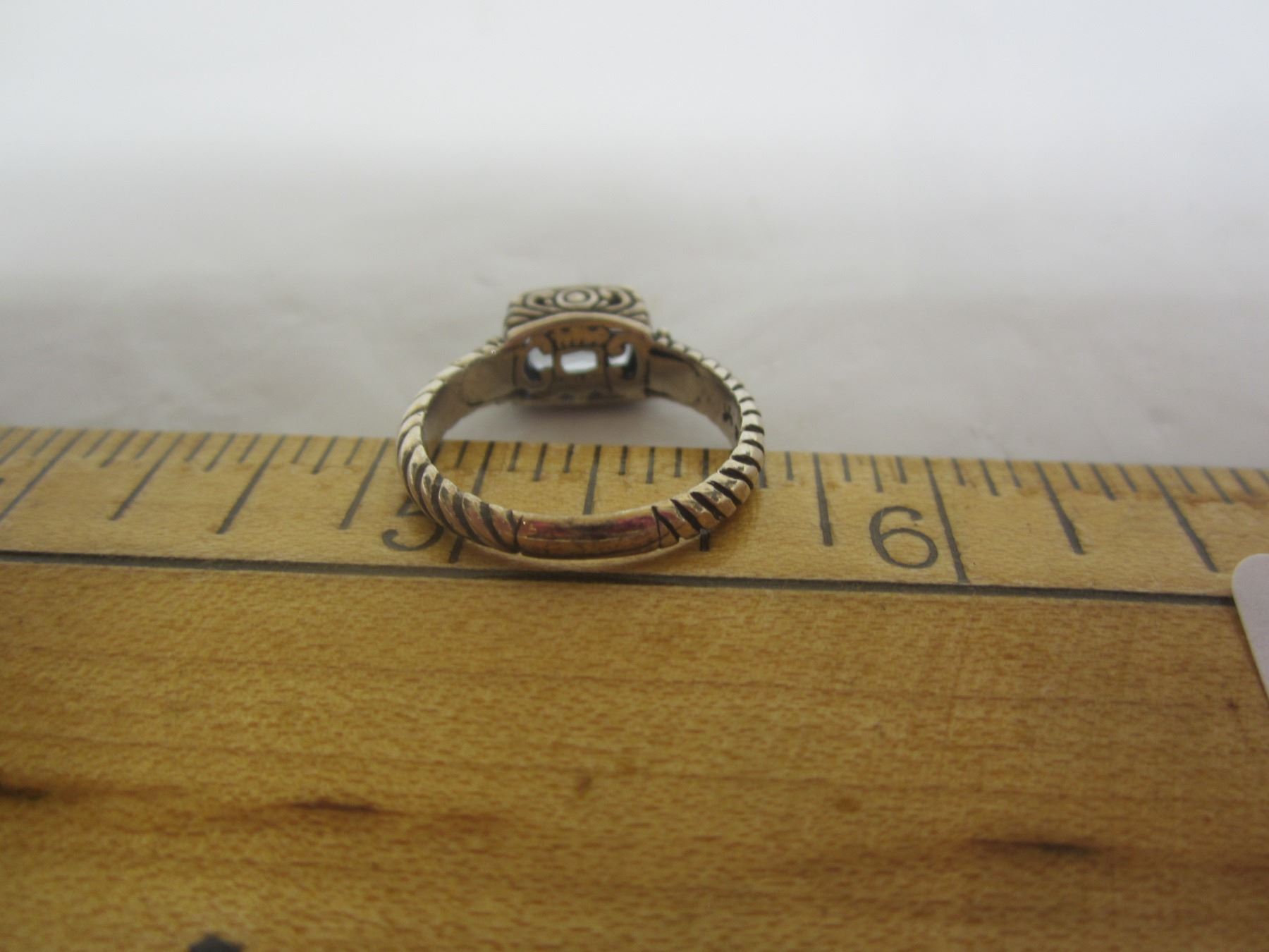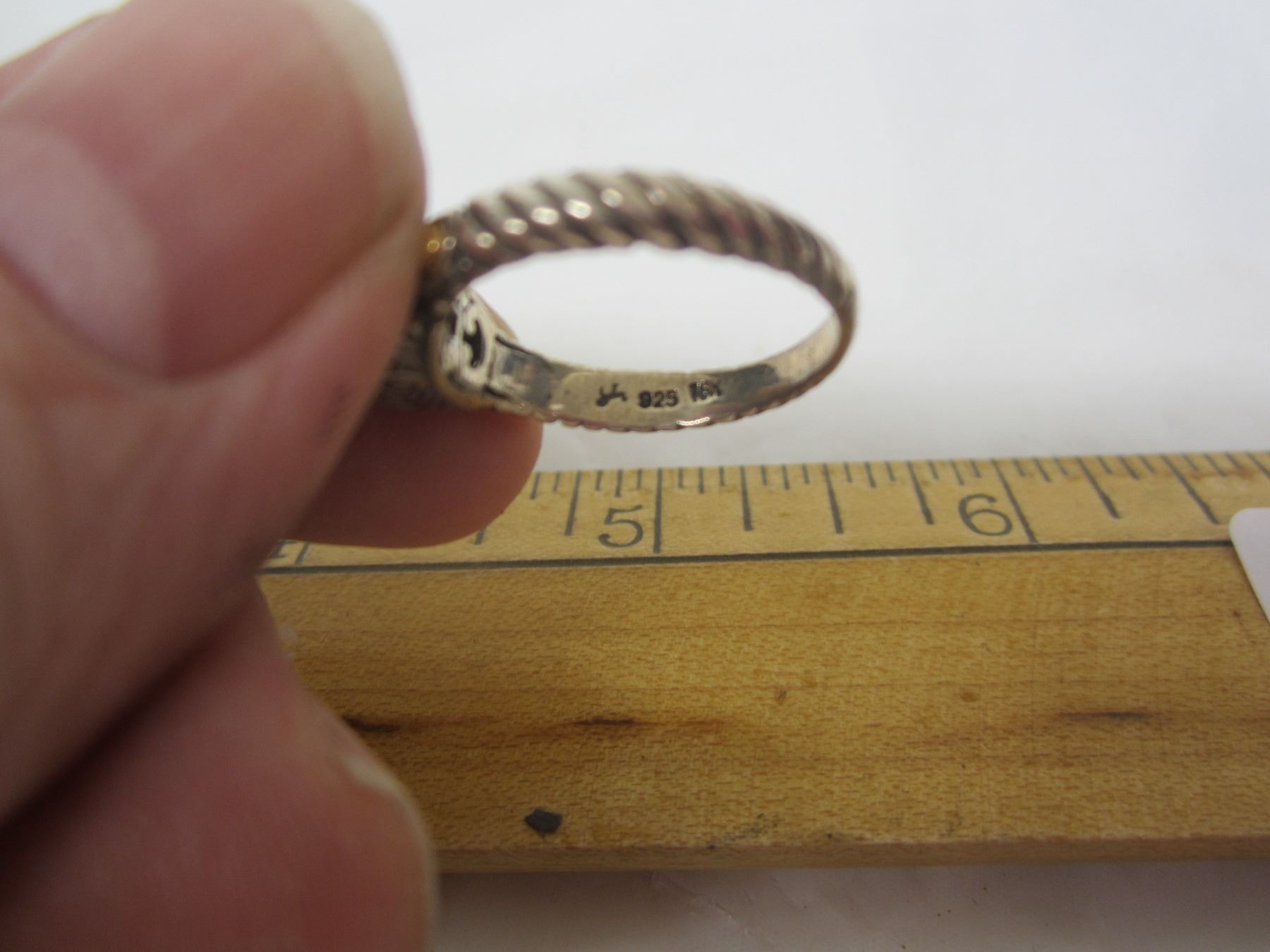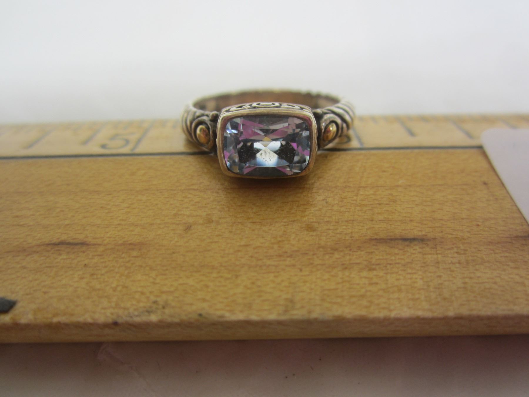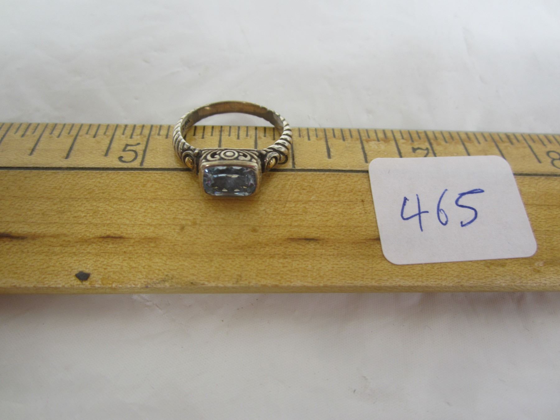 465. Sterling 925 Silver Ring with Gold Accents and a Blue Stone