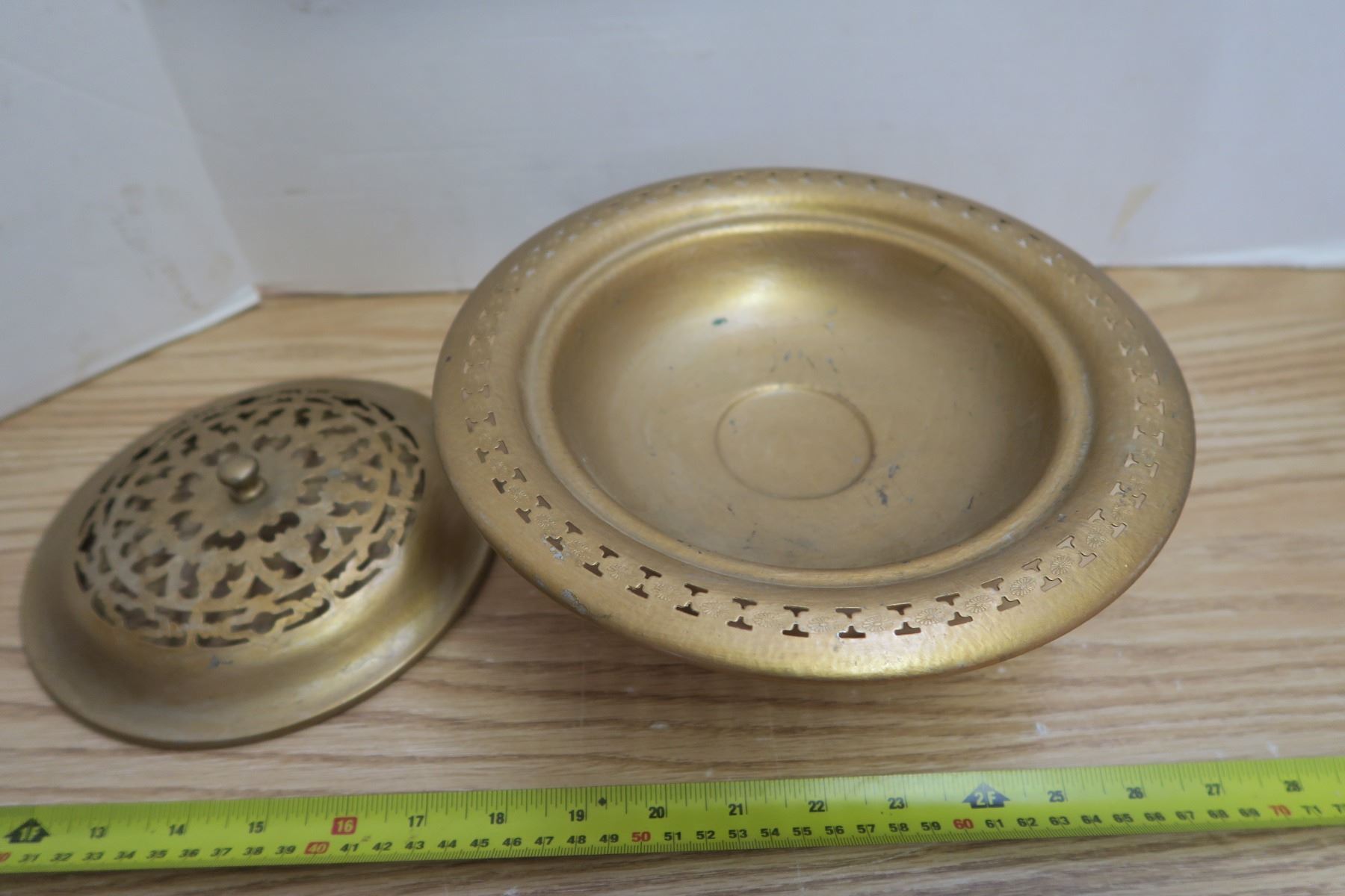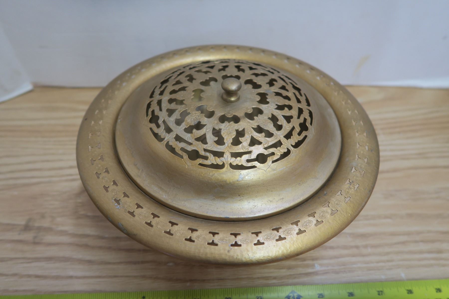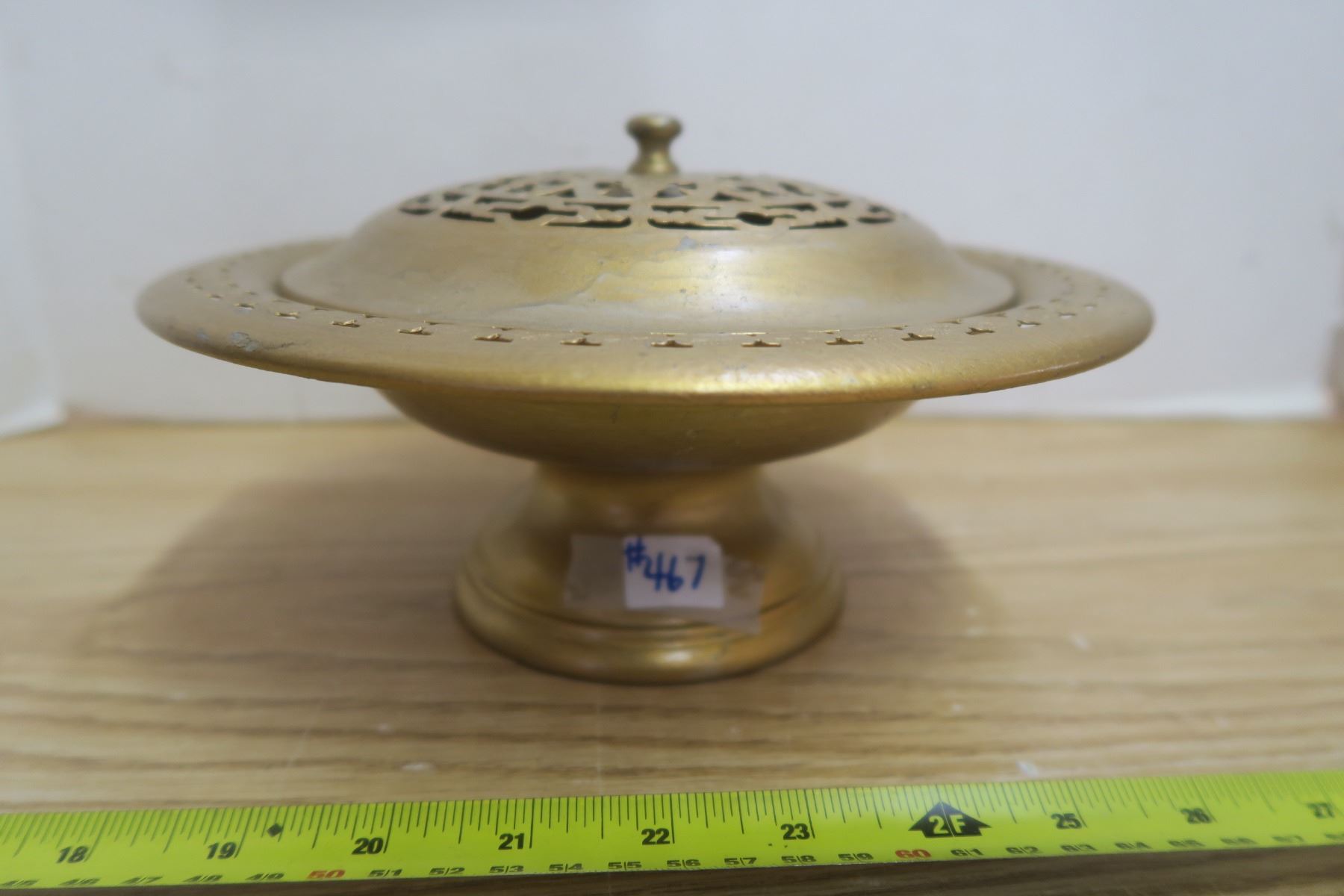467. Footed metal potpourri bowl with pierced lid