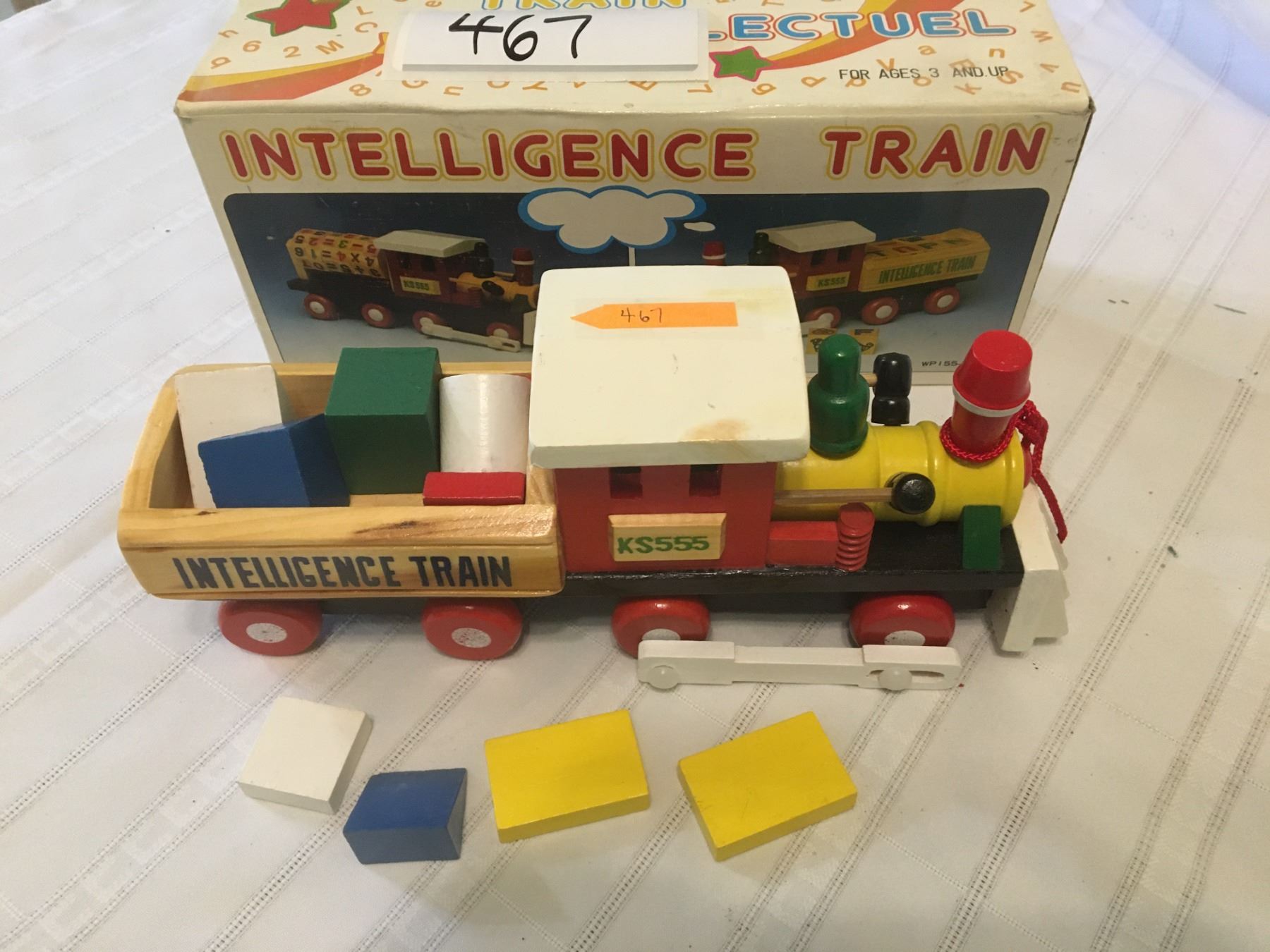 467-WOODEN INTELLIGENCE TRAIN WITH SHAPES MINT PRE1995
