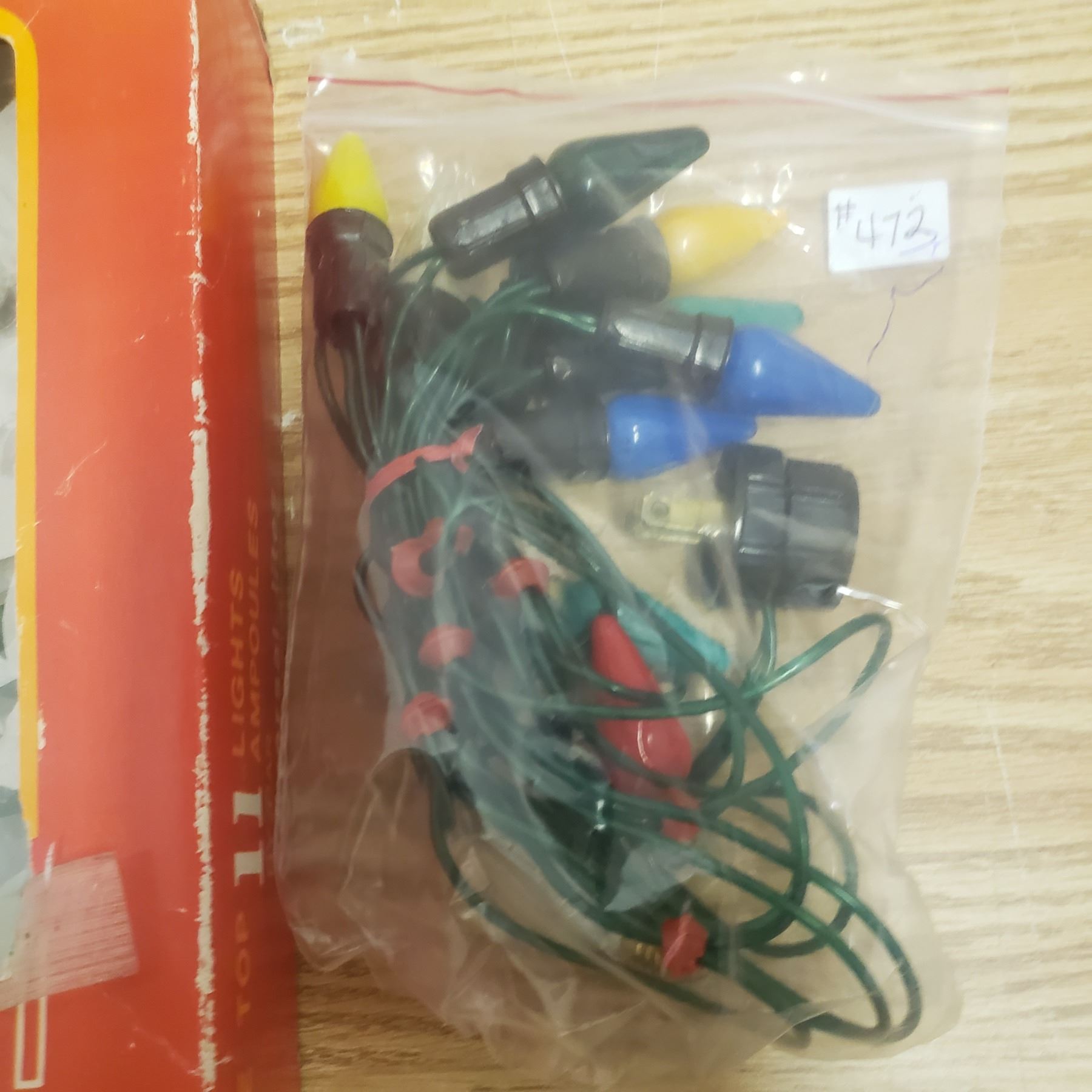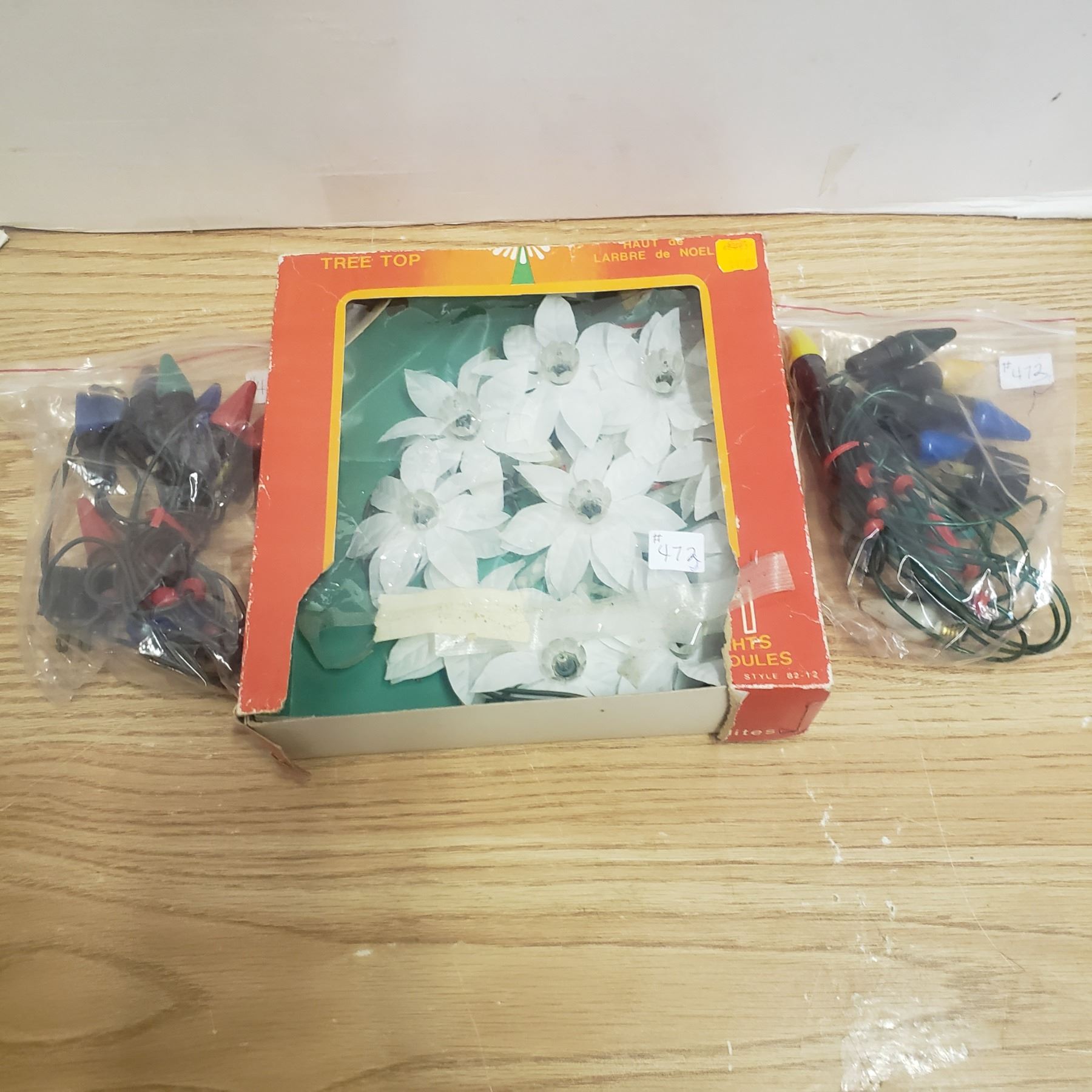 473. Christmas tree top and 2 strings of vintage lights (working)