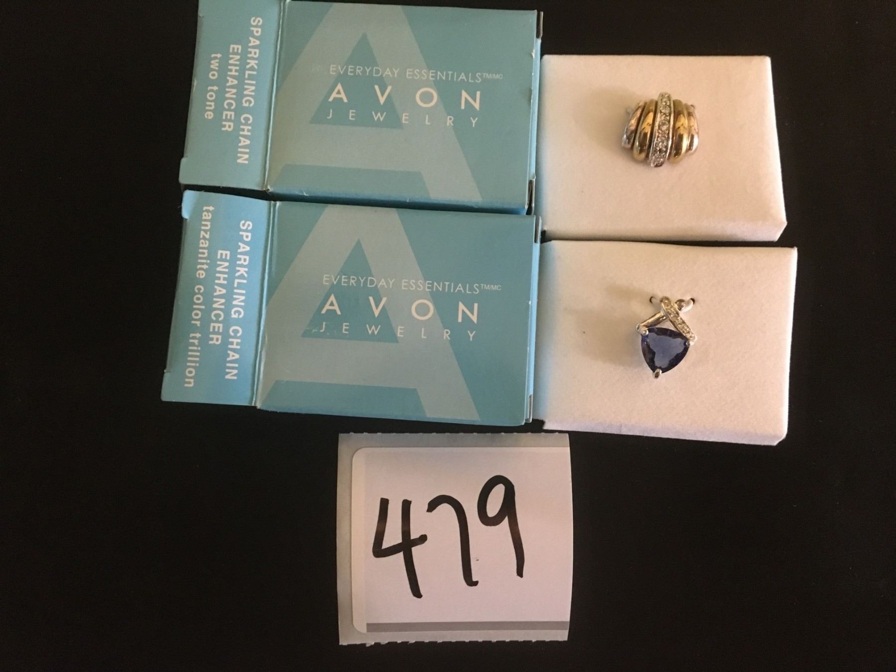 479-AVON CHAIN ENHANCER SLIDES 1 TANZANITE /RHINESTONE 1 TWOTONE GOLD/SILVER