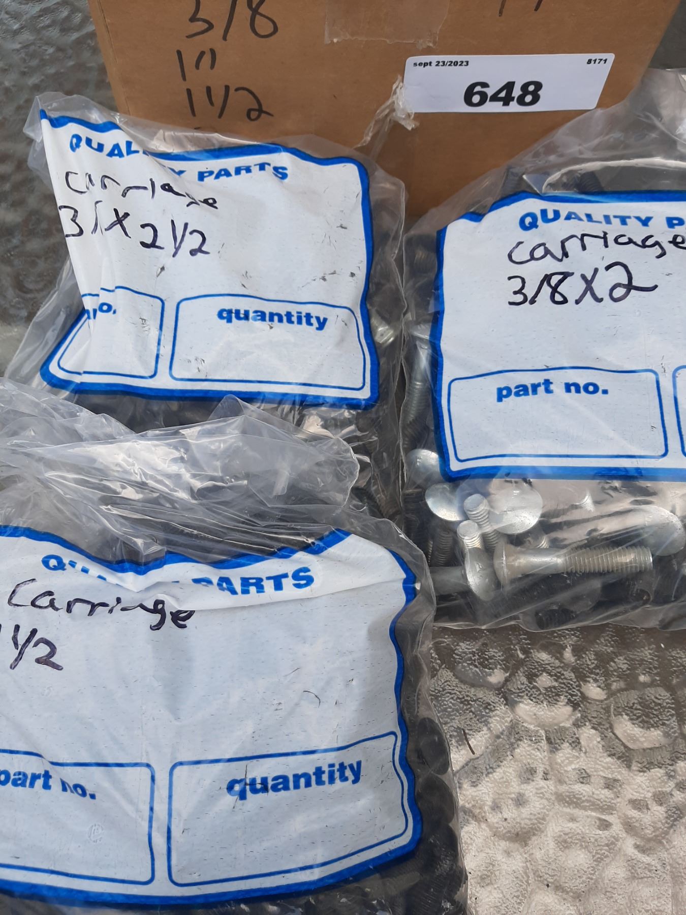 47lb box of 3/8 carriage bolts 1" 1 1/2" 2" 2 1/2"