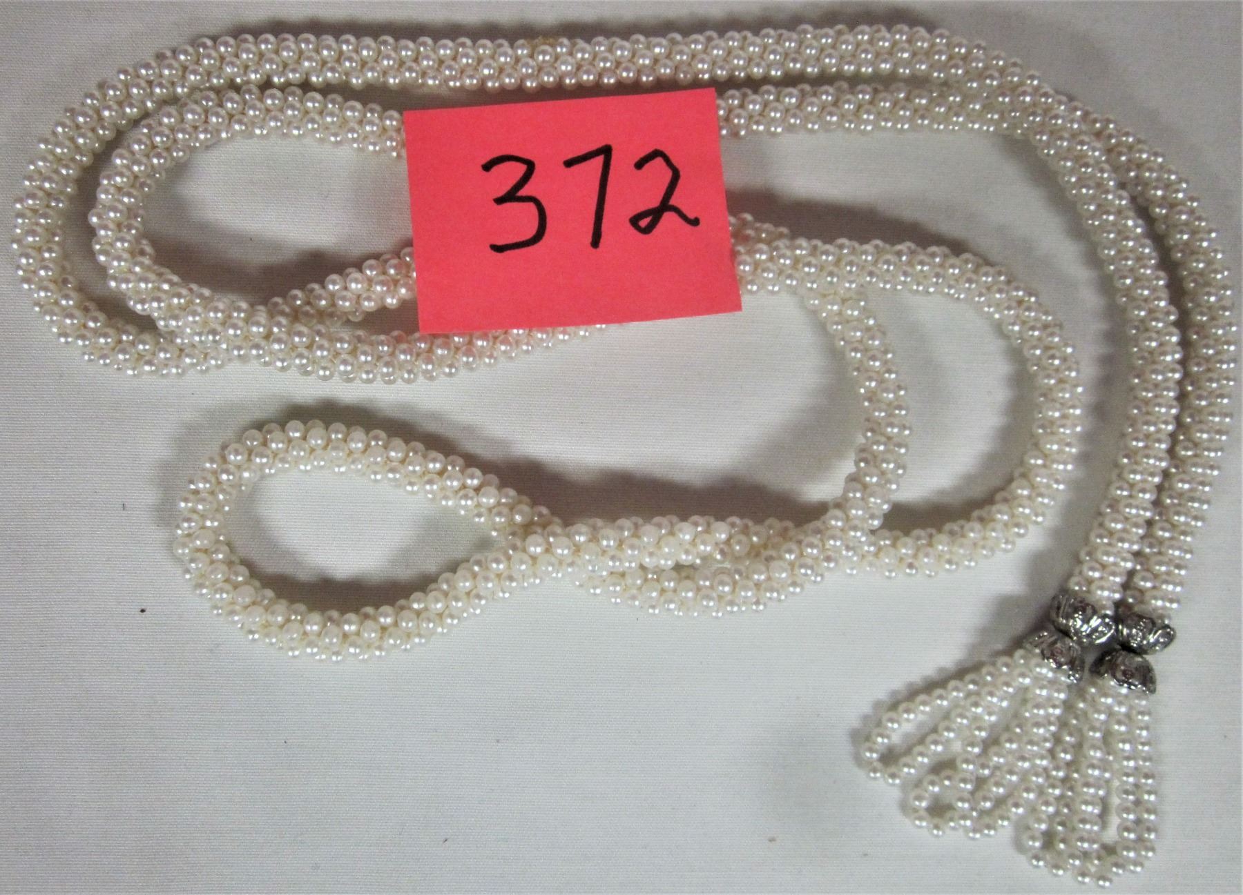 48" braided white plastic mini pearl beads 'dangling' necklace