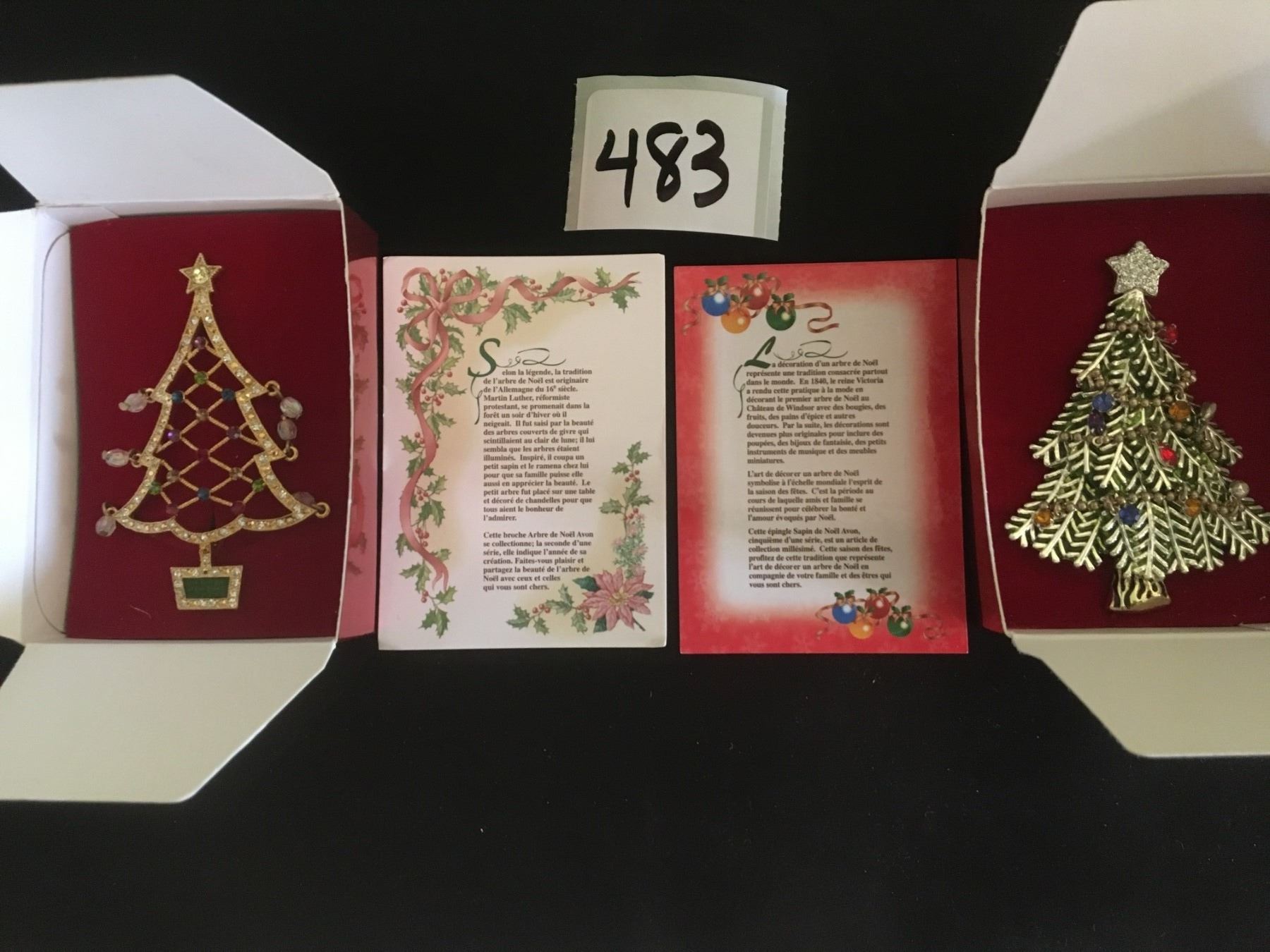 483-AVON COLLECTIONS CHRISTMAS TREE PINS 2005/2008 IN ORIGINAL PACKAGING MINT