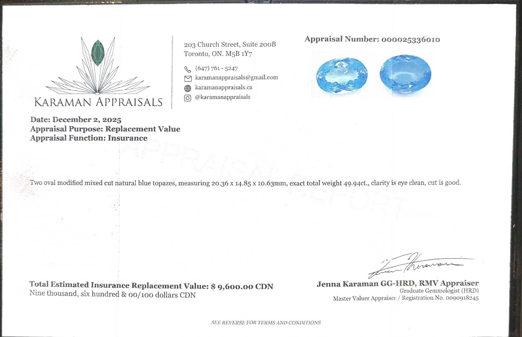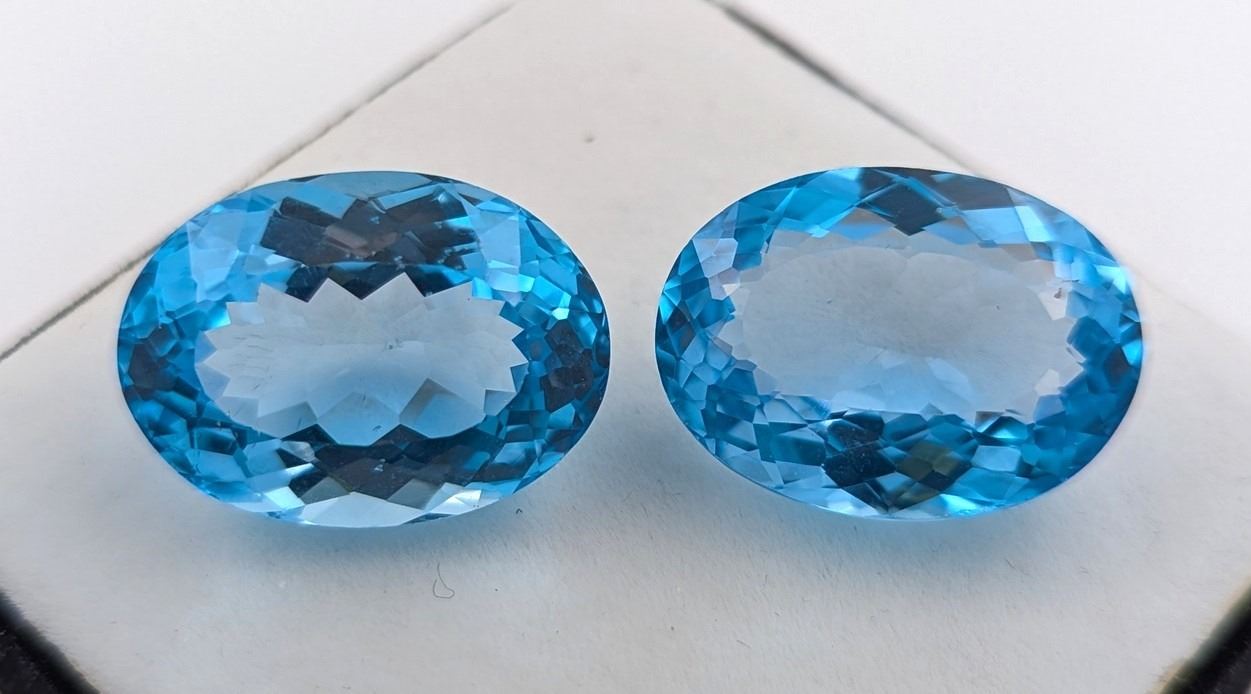49.94 ct Certified Royal Blue Topaz gemstone Pair ($9,600 Appraisal)