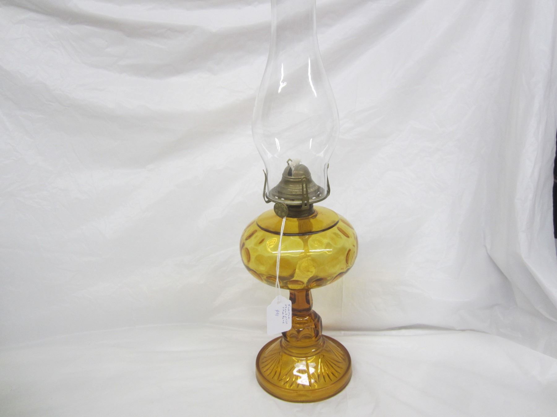 491. 1880's Amber Inverted Thumbprint and Fan Base #1 Coal Oil Lamp