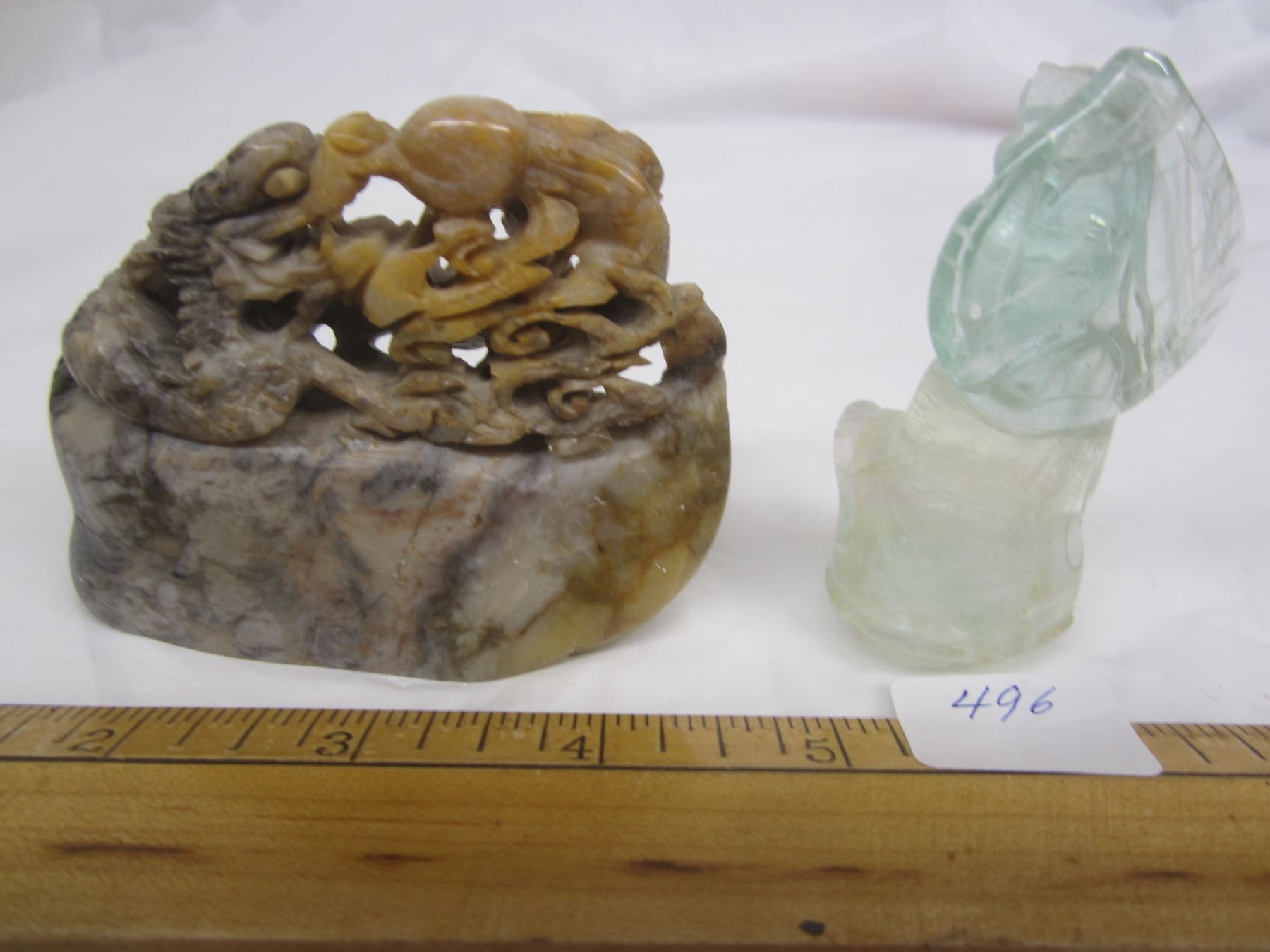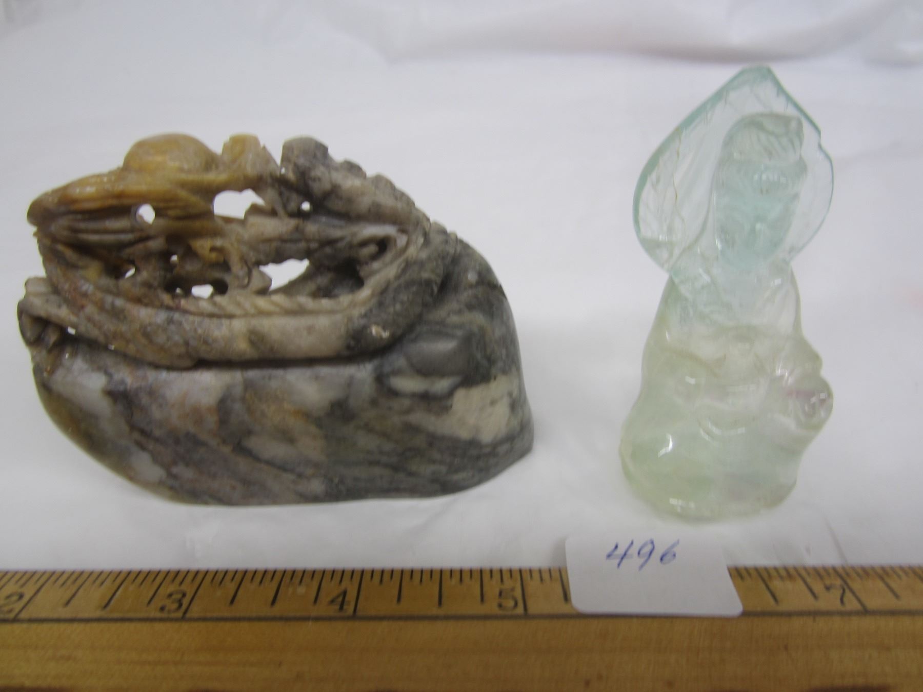 496. 2 Antique Carved Stone Chinese Figures