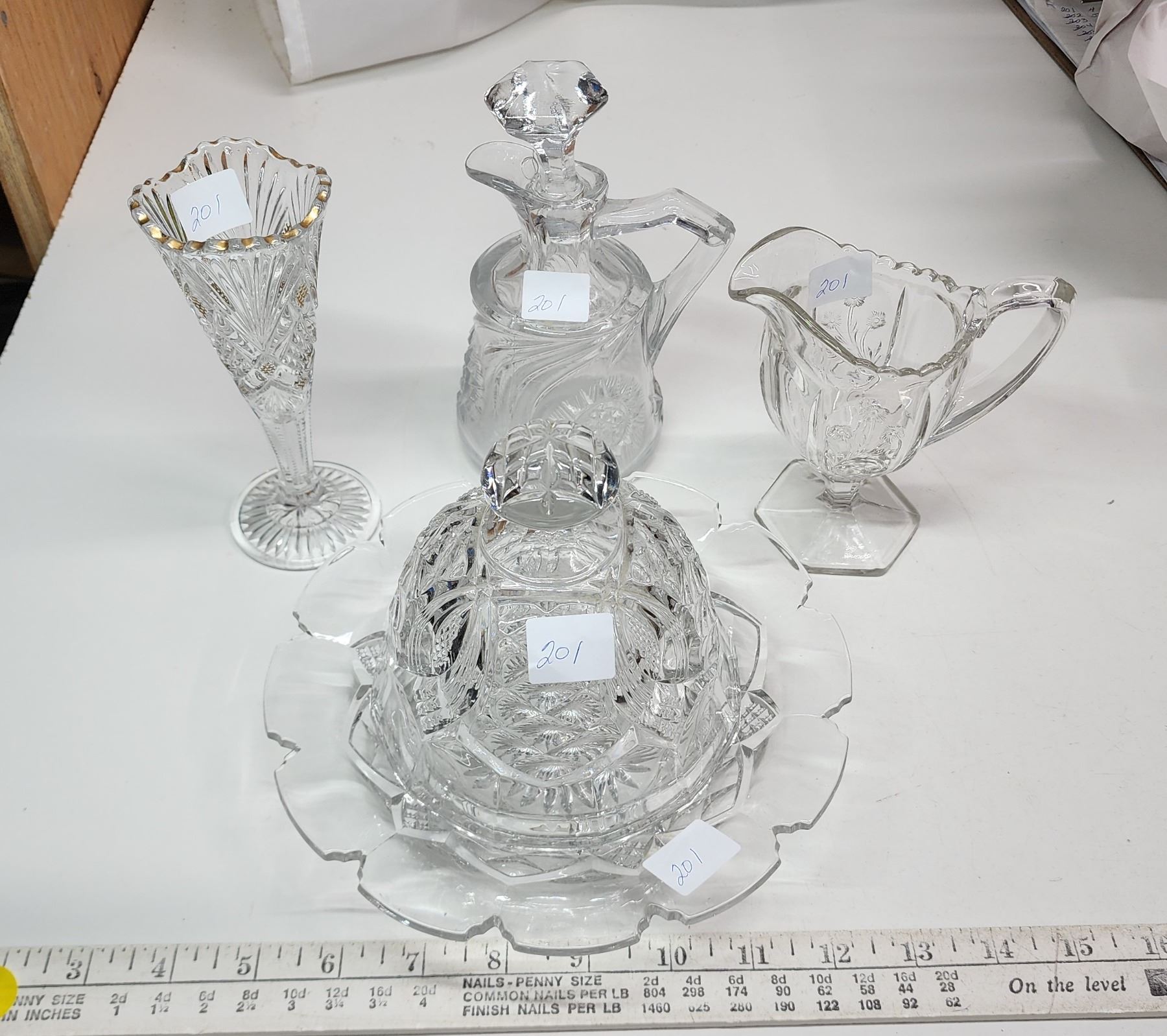4pcs old pressed glass