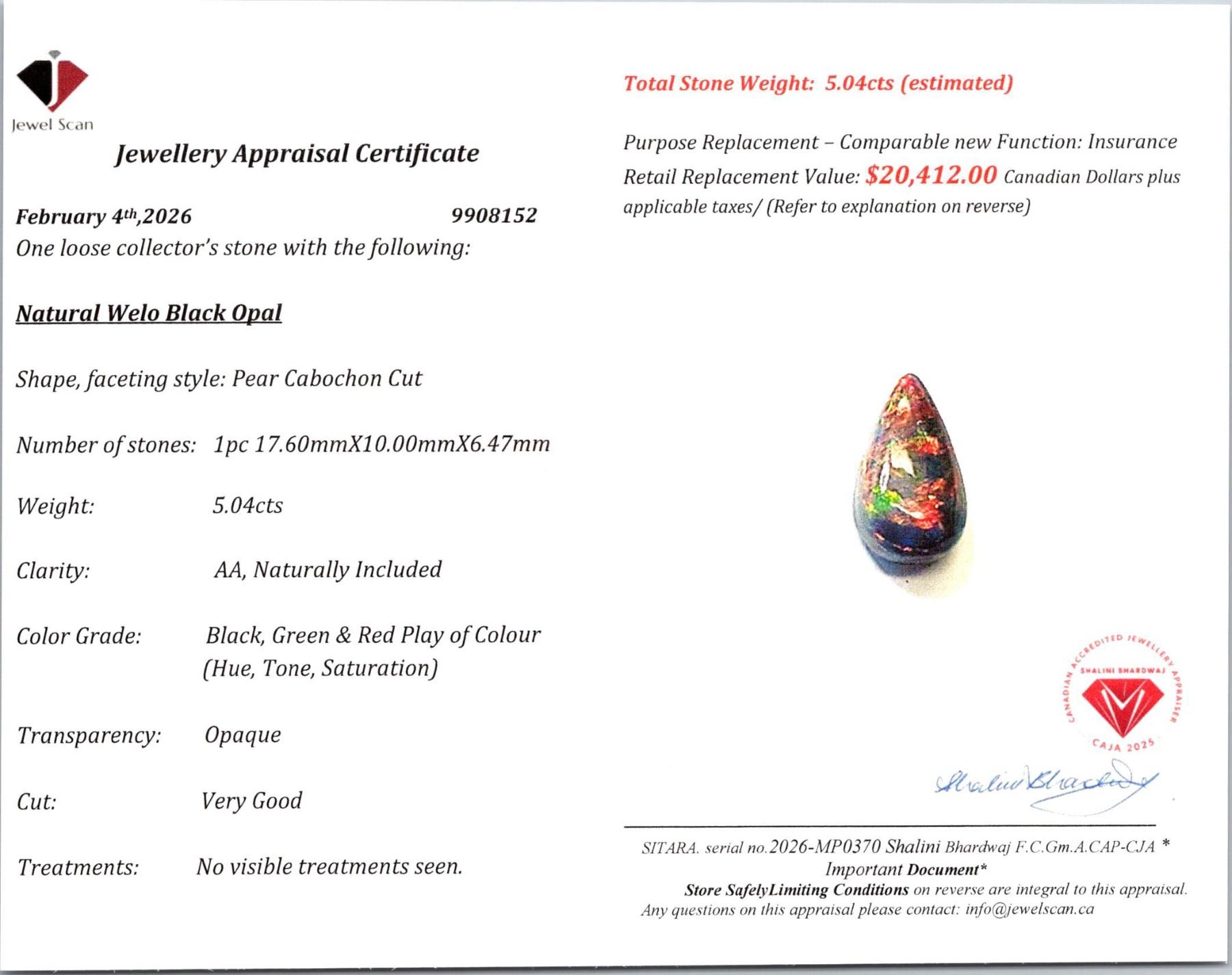 5.04 ct Certified Bright Flash Opal gemstone ($20,412 Appraisal)