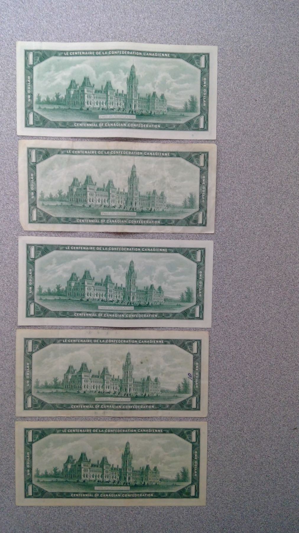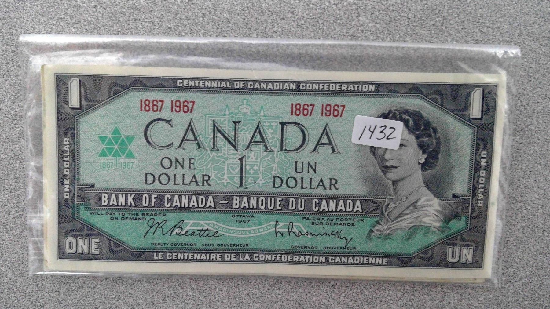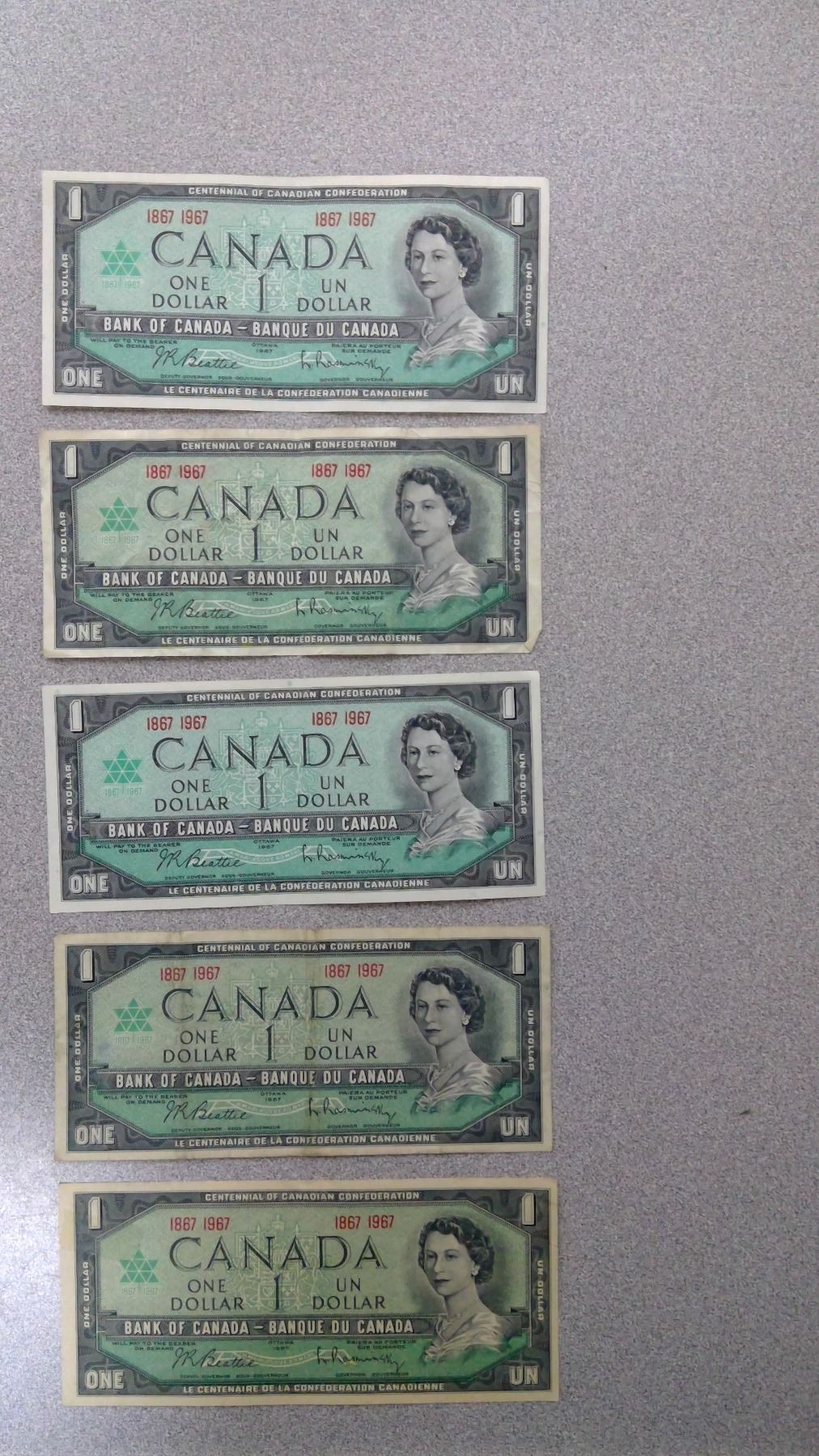 5 1967 $1 Bills in plastic bag