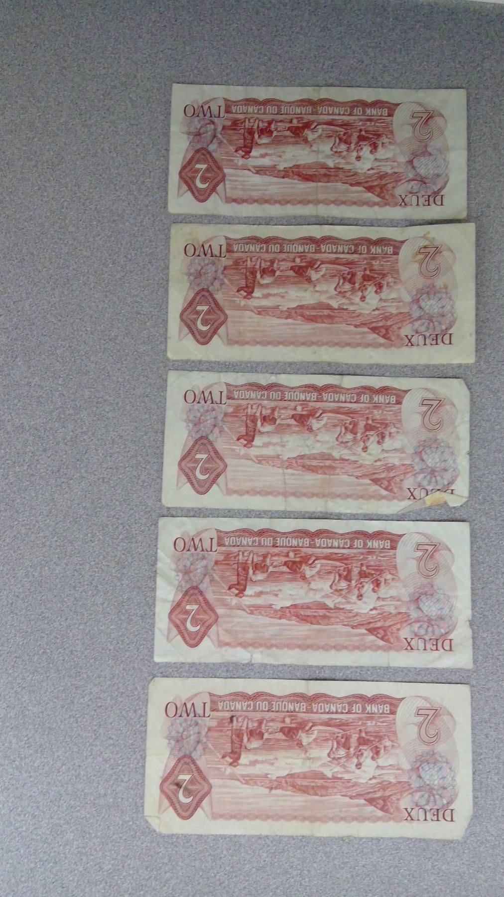 5 1974 $2 Bills in plastic Bag
