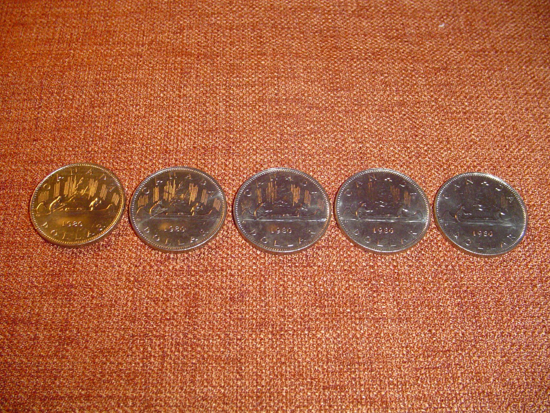 5 1980 canadian silver dollars