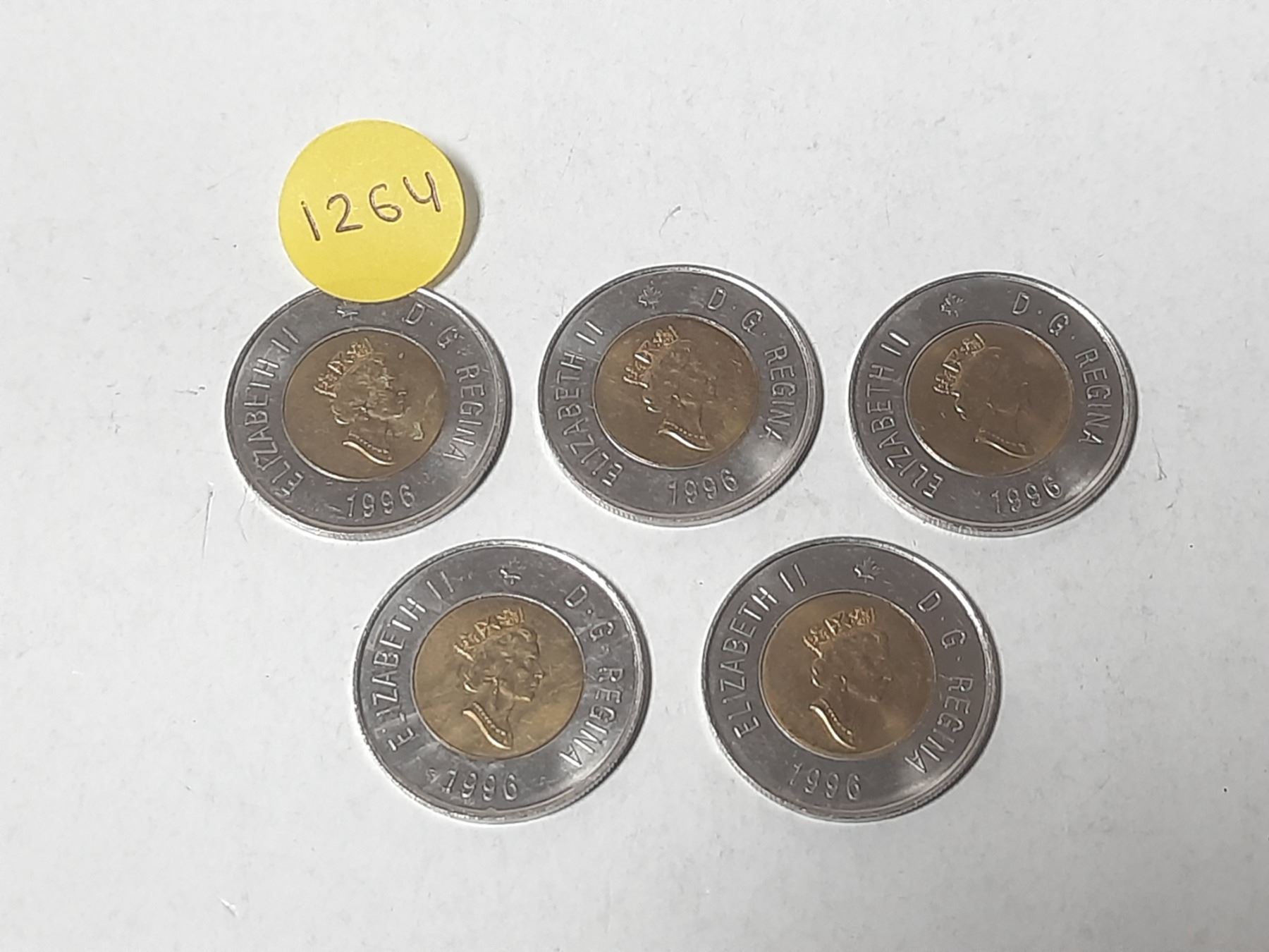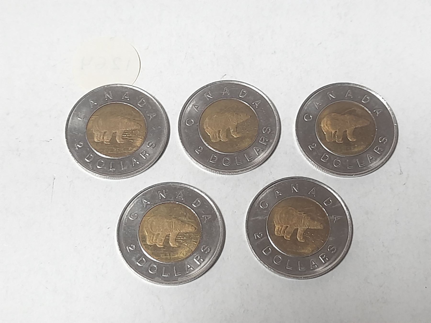 (5) 1996 Canadain Two Dollar Coins.