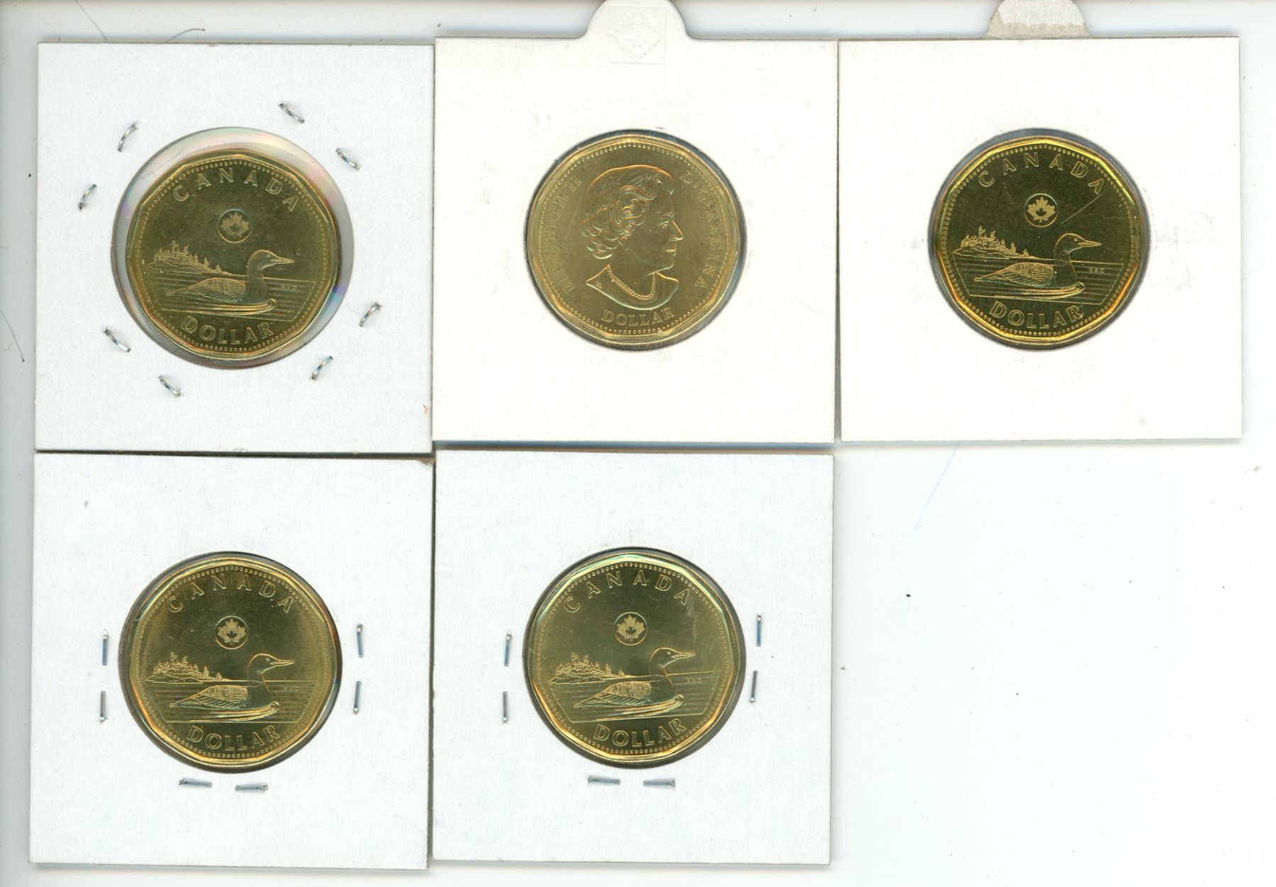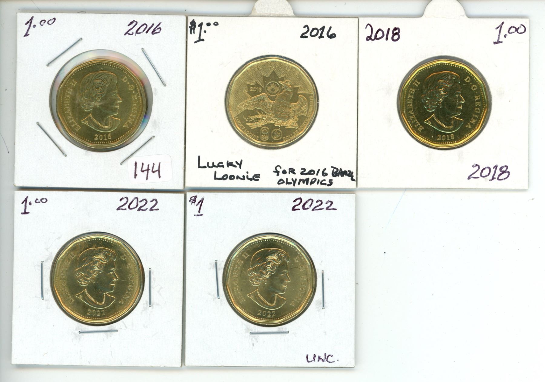 5 - 2016, 2018 & 2022 Canadian loonie dollar coins