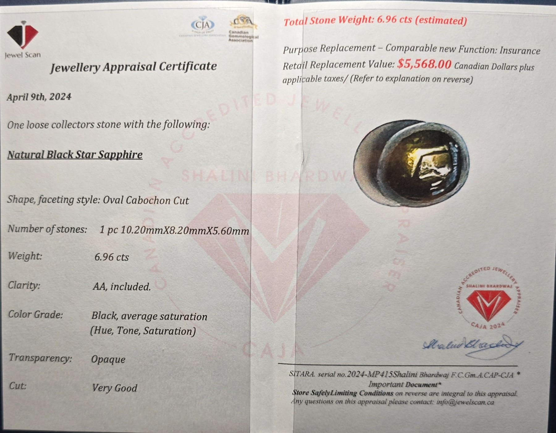 5.38 ct Certified Black Star Sapphire gemstone ($5,568 Appraisal)