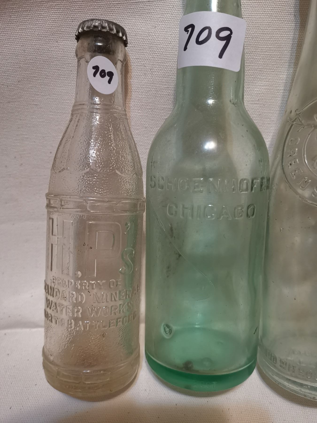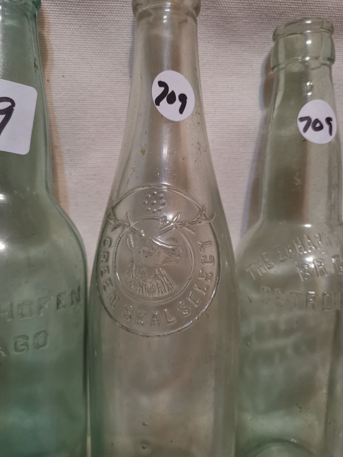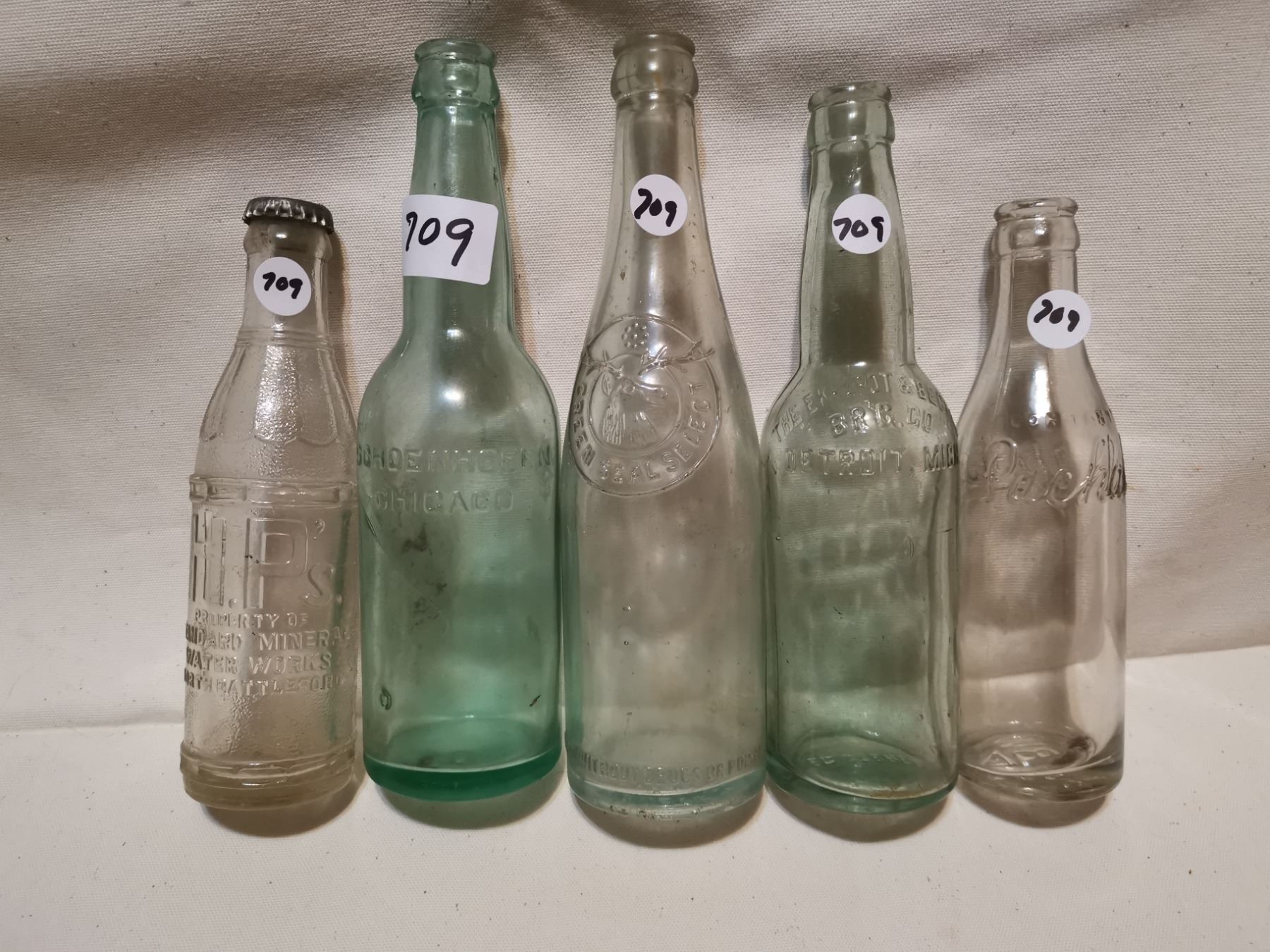 5 ANTIQUE EMBOSSED BOTTLES LOT 2