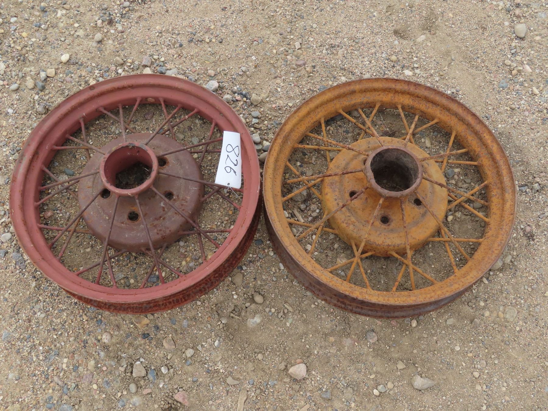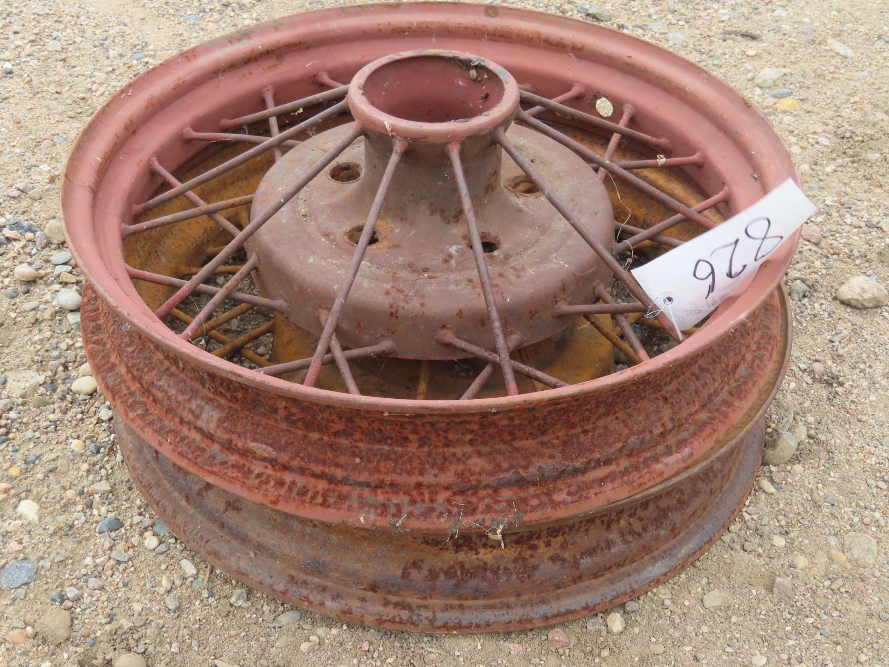 5 Antique 20" diameter metal tires 4 "w rim -red & faded yellow